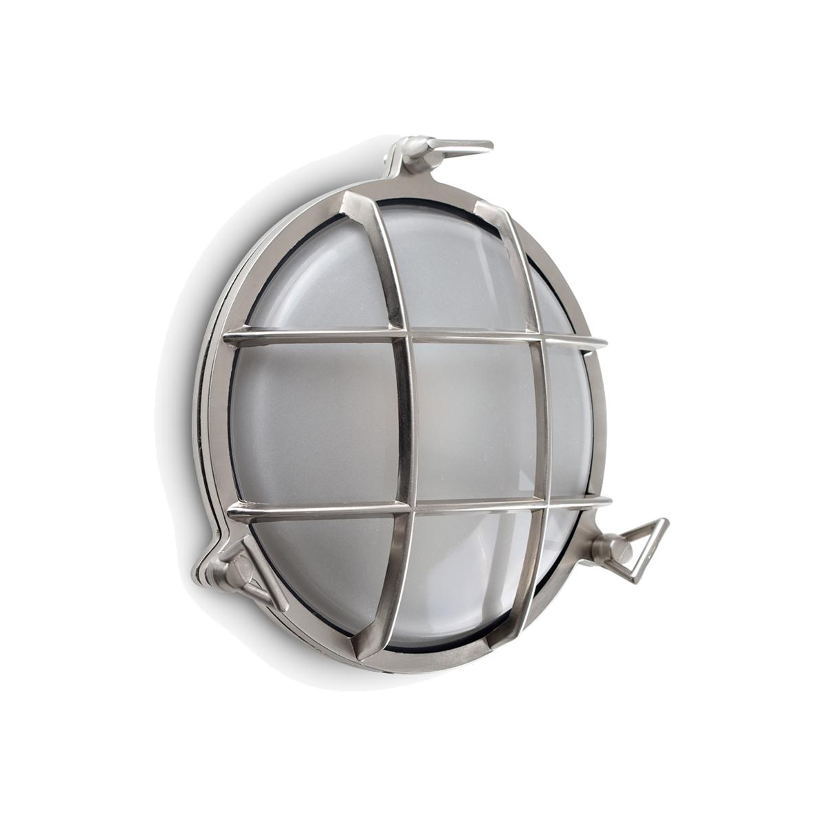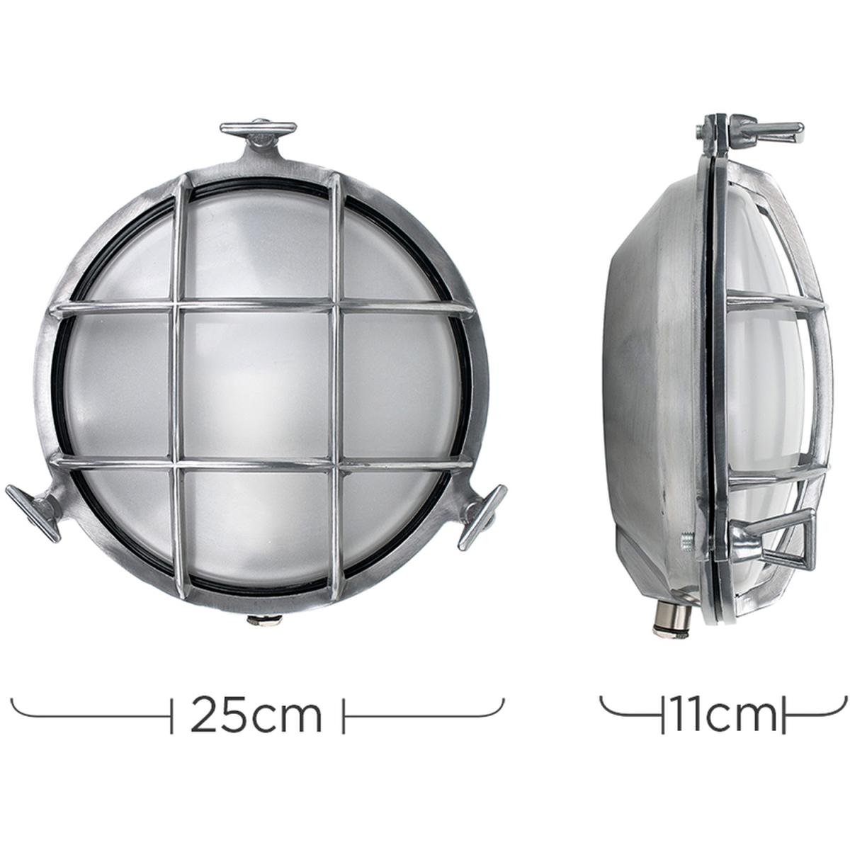 Nautical style outdoor wall light in a polished aluminium metal finish casing. With an IP64 rating, you don't need to worry about weather or rain damage. Ideal for outdoor walls, garages, porches and patios.