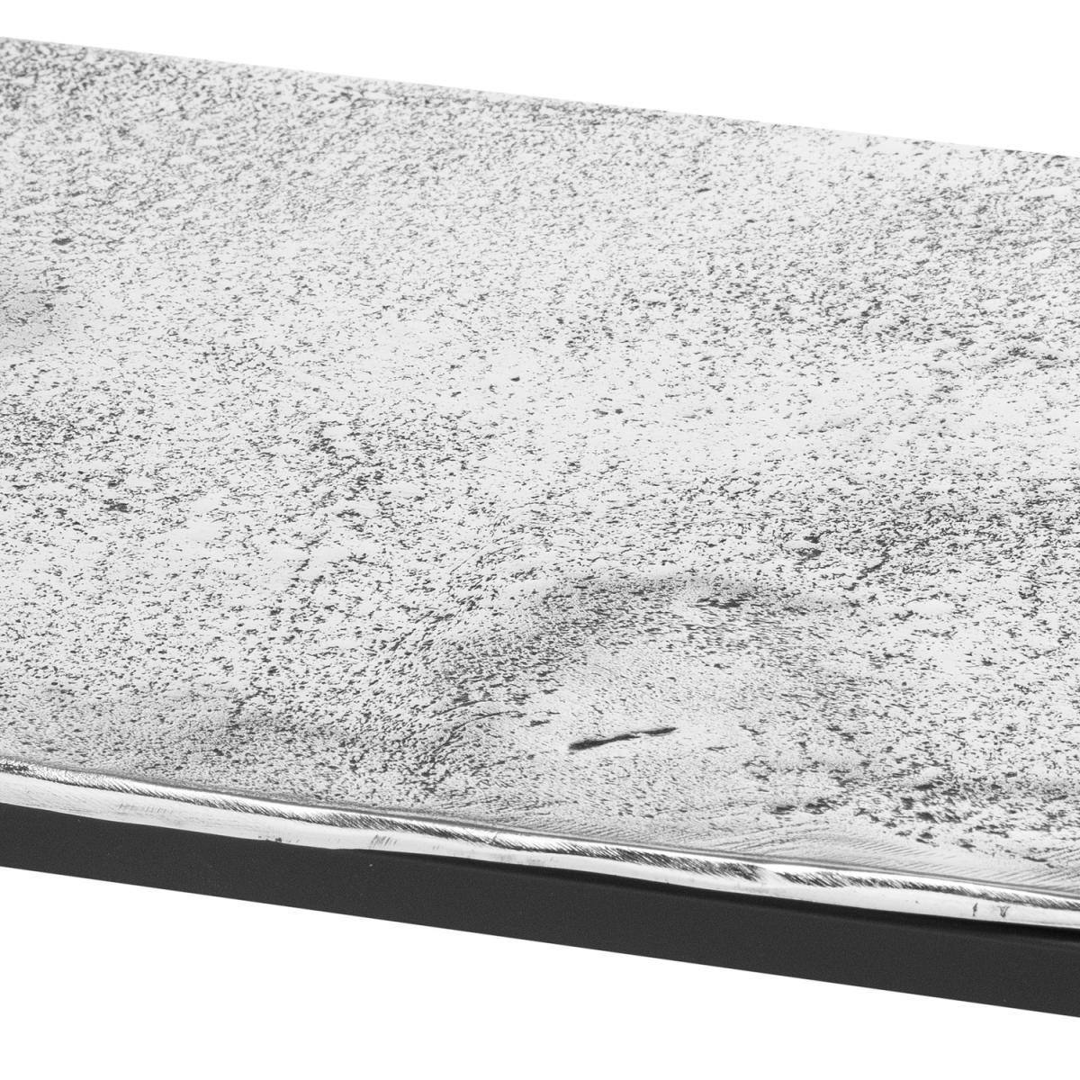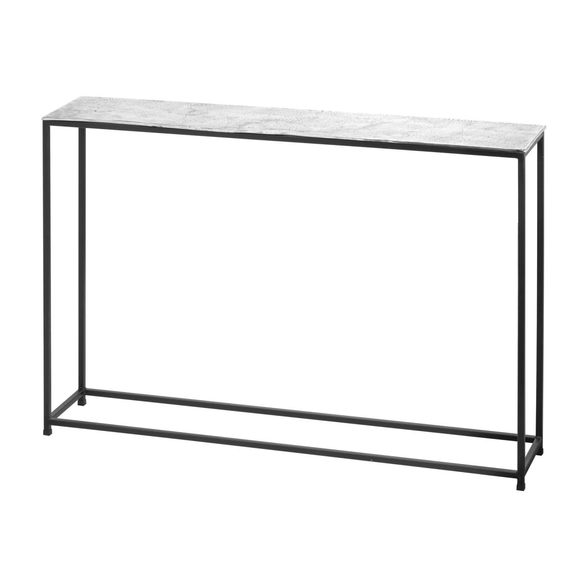 This Silver textured console table is designed with versatility of use in mind. Featuring a textured surface and hand cast in aluminium. The table is hardwearing yet light enough to move around your home. It's contrasting black legs make it perfect for a modern contemporary interior.