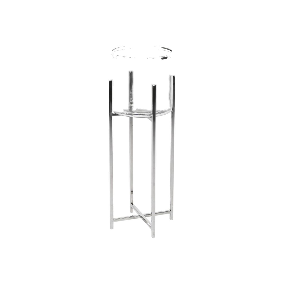 The Silver Stand Glass Hurricane is an exquisite piece that can add a touch of contemporary allure to your living space. The hurricane portion features a stunning silver trim, and the sleek silver metal legs provide an artistic and stylish touch to your decor. If you're aiming to create a stunning and eye-catching display, you can pair the Silver Stand Hurricane with the Large Silver Stand Hurricane. Together, they add ambience and provide a bold statement to your interior design.