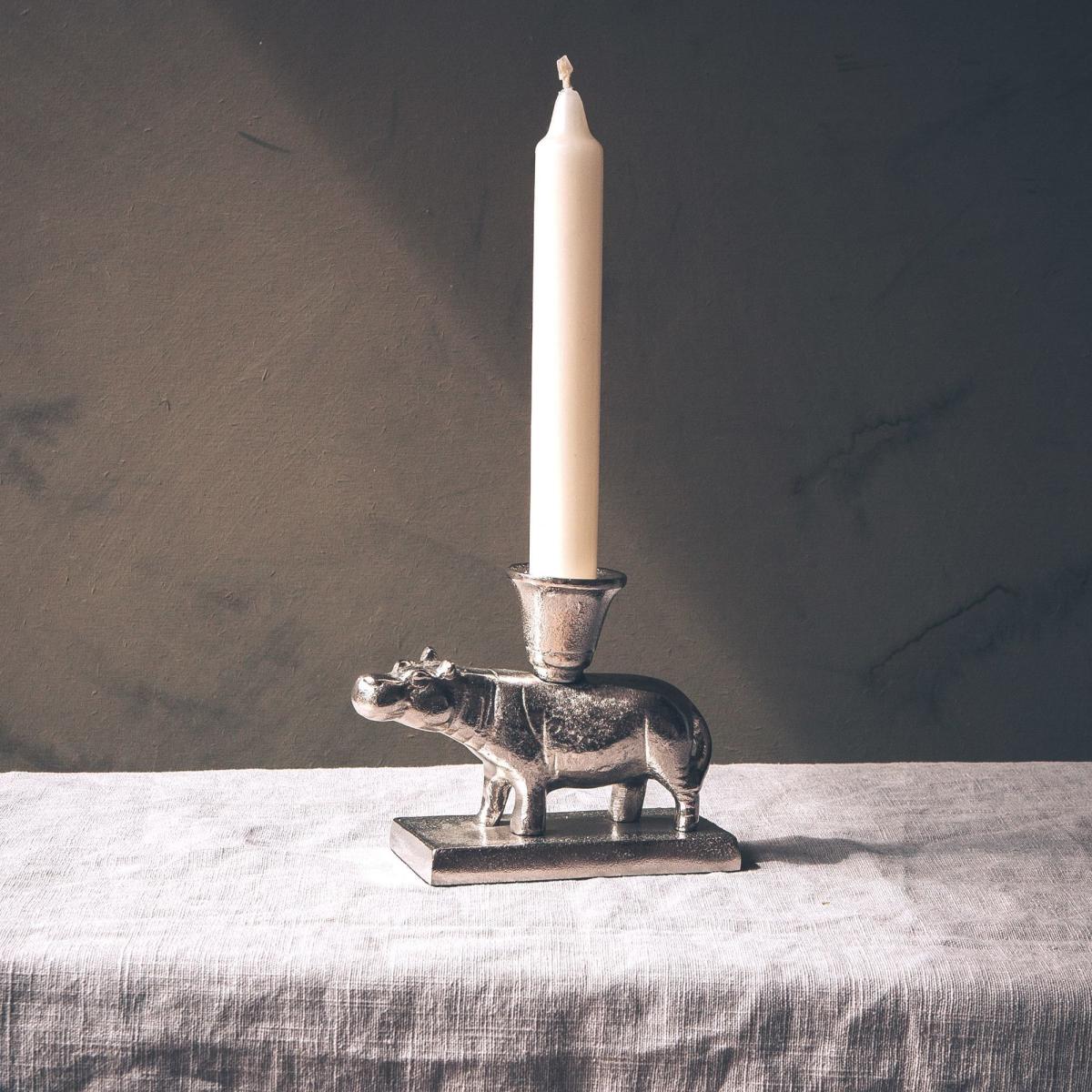 An eye-catching, ornamental collection of striking taper candle holders, in four exotic animal designs; bear, tiger, hippo or rhino. Perfect for an elegant table setting or illuminating dark corners with style. Hippo (EGW1005): H10 x W14 x D5. 5cm Rhino (EGW1006): H10 x W13 x D5. 5cm Tiger (EGW1007): H10 x W14. 5 x D5. 5cm Bear (EGW1008): H10 x W12. 5 x D5. 5cm Made from aluminium. Lead-free, silver nickel finish. Sold individually.