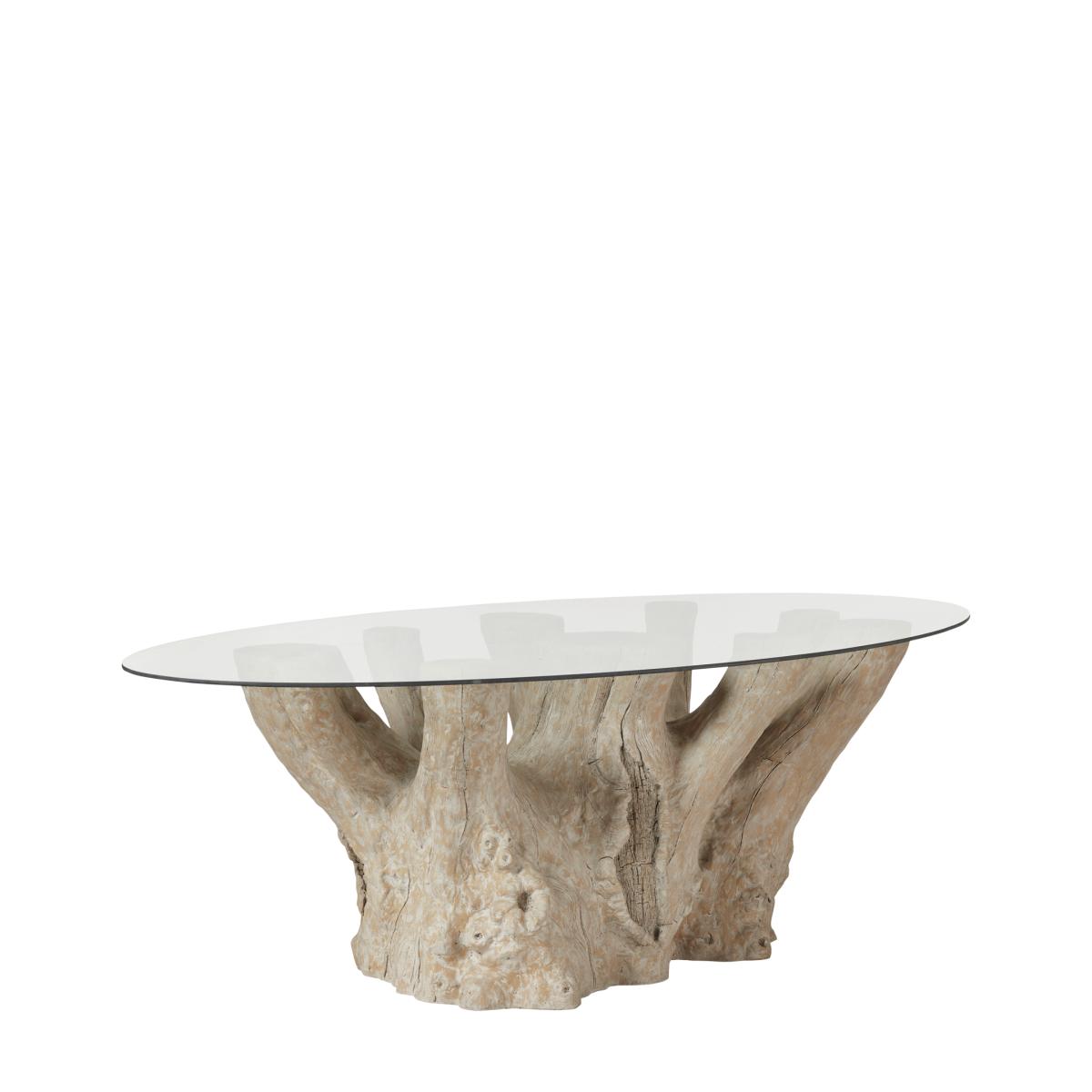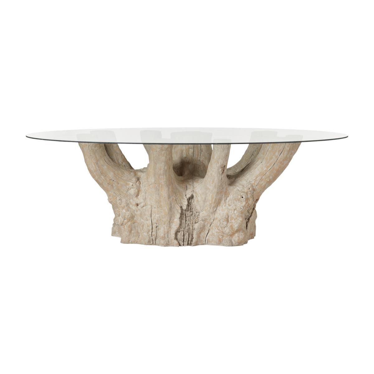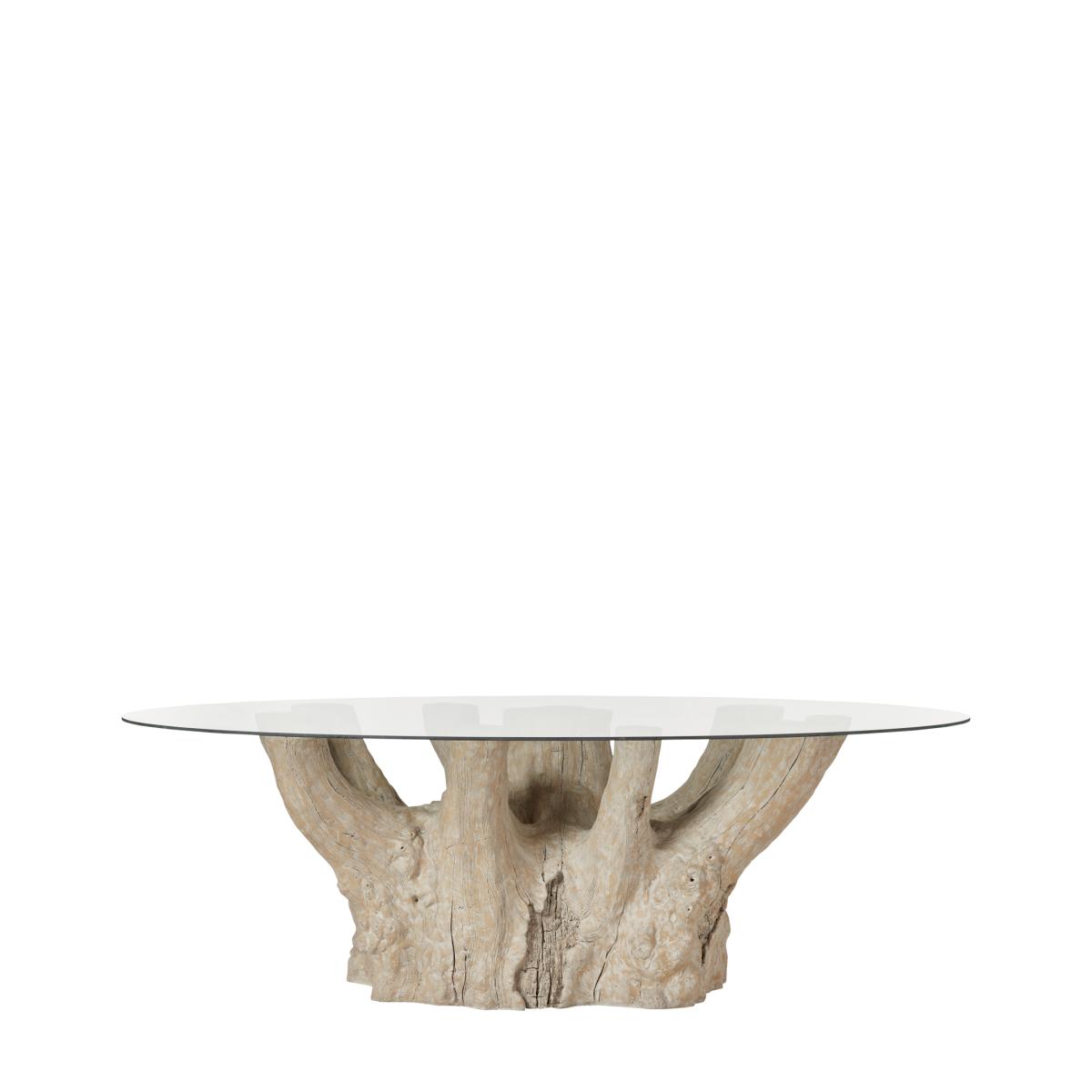 You asked, we answered. After receiving numerous requests to create more oval-shaped dining tables, we designed the Silverstein. Seating ten, the Silverstein's clear glass top contrasts beautifully with its textured resin base. It's perfect for summer dining - be that by a pool, on a terrace or in the middle of a country garden - but it makes as big of a statement when styled indoors. Silverstein Tree Trunk Table - Natural