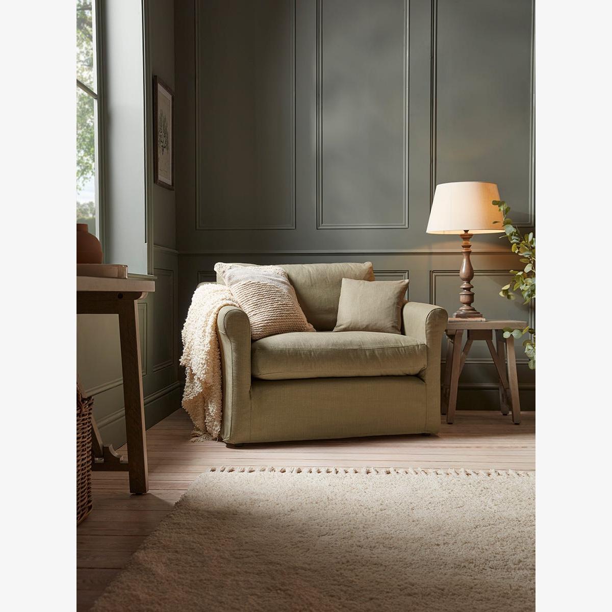 The Silves loveseat offers generous seating built along relaxed lines. With loose covers moulded to its gently sloping slender P-shaped arms, the casual styling has a slightly higher back and deep feather cushions to the seat and back for superior levels of comfort. Handcrafted in the UK, the Silves range also includes two sofa sizes and an ottoman.