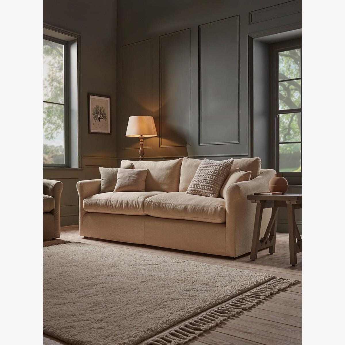 Our Silves sofa is built along relaxed lines, with loose covers moulded to its gently sloping slender P-shaped arms. The casual styling offers arms that are lower than the back and a deep feather cushioned seat and back for superior levels of comfort. Handcrafted in the UK and available in two and three seater options, the Silves range also includes a loveseat and an ottoman.