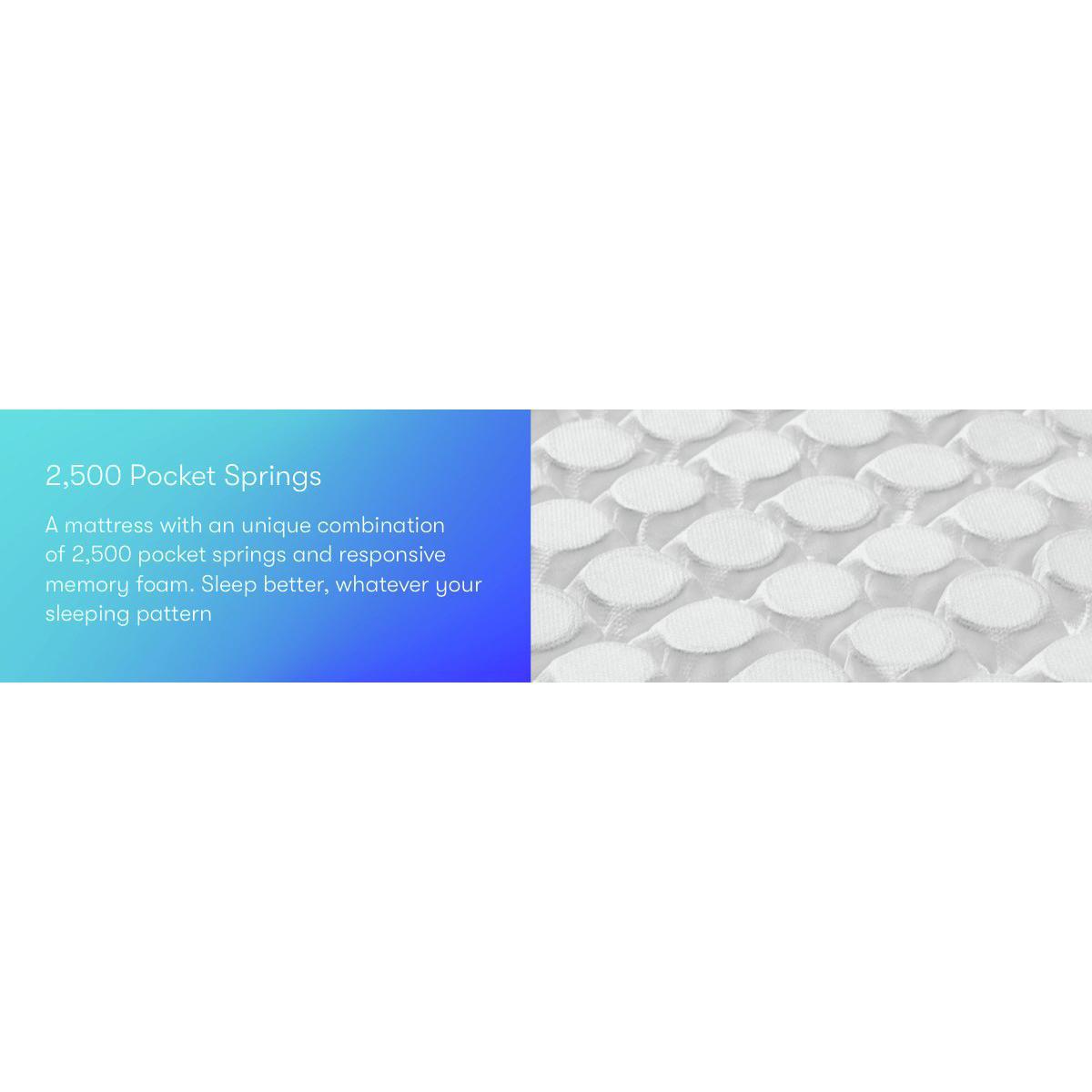 A mattress with a unique combination of 2,500 conical pocket springs and responsive memory foam. It provides five luxurious layers designed to fit you and help you get the quality of sleep you've been dreaming of. We developed it together with the Sleep To Live Institute and analysed 180 million data points from 10 million different sleepers to ensure it fits all kinds of sleepers and body types.