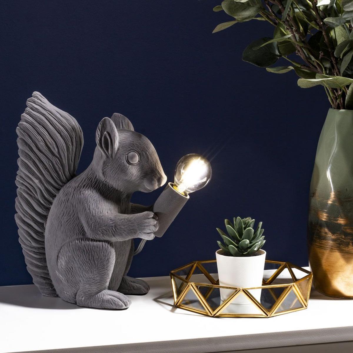 I love this little squirrel lamp for adding a touch of playful charm to a variety of interiors. Its grey tone makes it a versatile piece that works well in modern, scandinavian, or even eclectic settings. I recommend placing it on a bedside table, bookshelf, or a quirky desk setup to bring personality without overwhelming the space. Practical styling tip: pair it with other neutral or subtly textured accessories to let the quirky design stand out, and consider using a warm bulb to soften the grey and create a cosy atmosphere. It’s particularly great for creating a fun but still tasteful vignette in kids’ rooms or casual living areas.