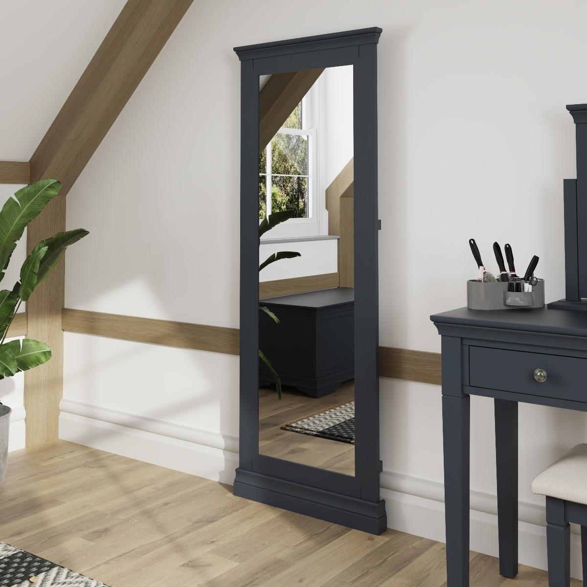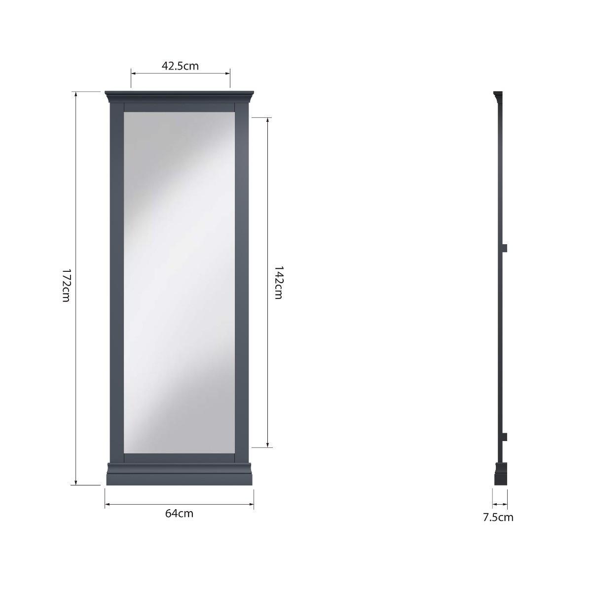 Decorative cornice and dark paint give the Simone collection a sophisticated feel. Solid pine and long-lasting MDF also mean the mirrors are practical and easy to care for. An impressive solid frame borders full-length glass that you can adjust for the perfect angle to add light and personality to the setting. A robust combination of pine and MDF for prolonged life. Adjustable to suit your requirements. Solid frame and full-length glass. Finished in a contemporary midnight grey paint