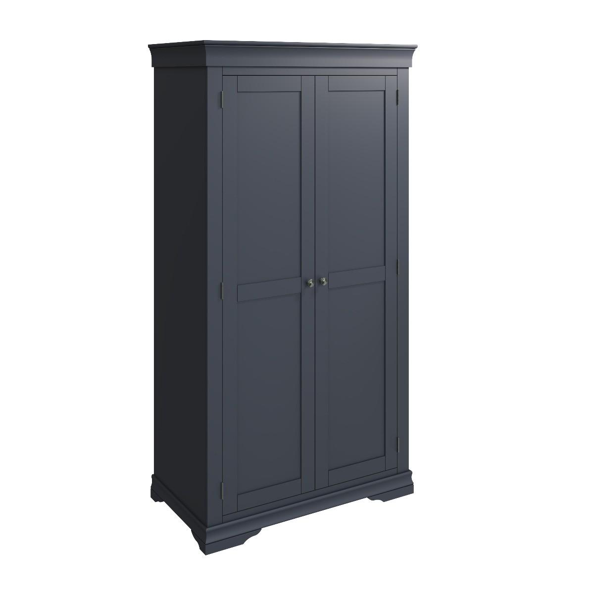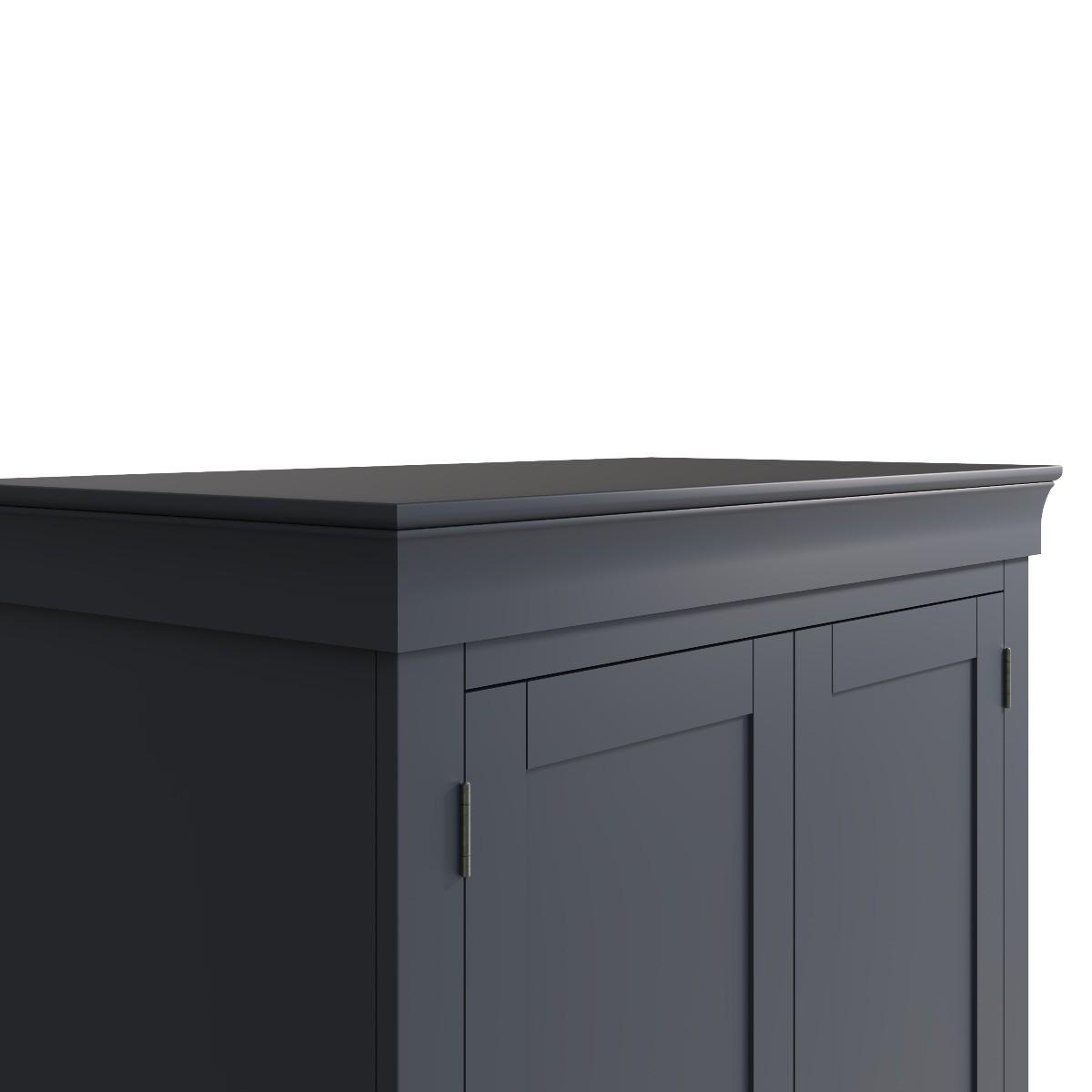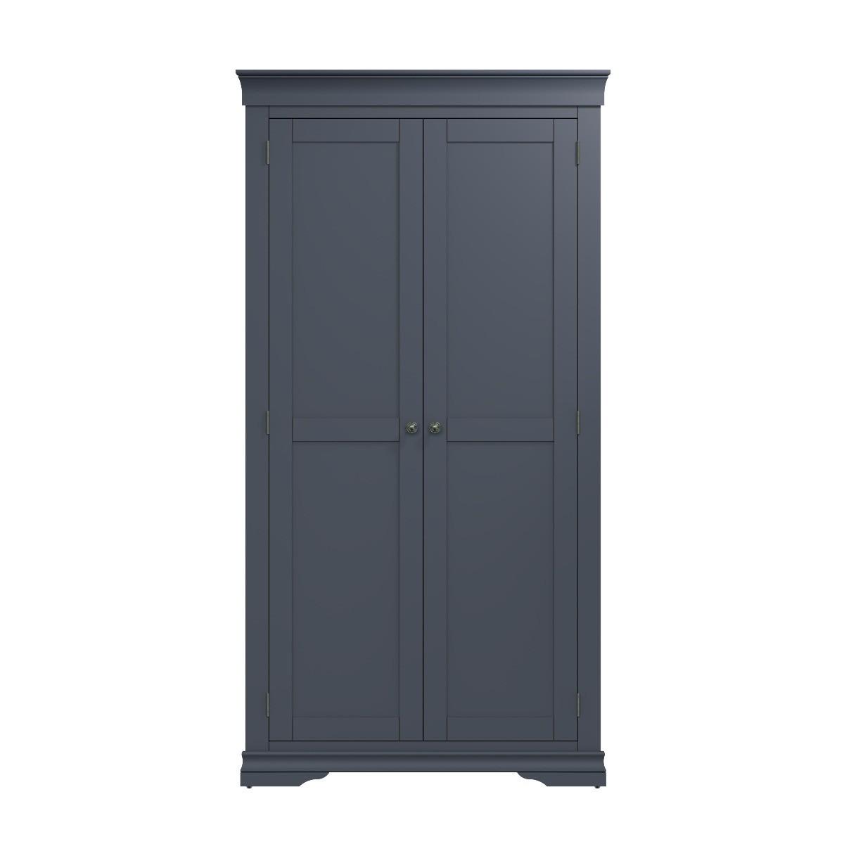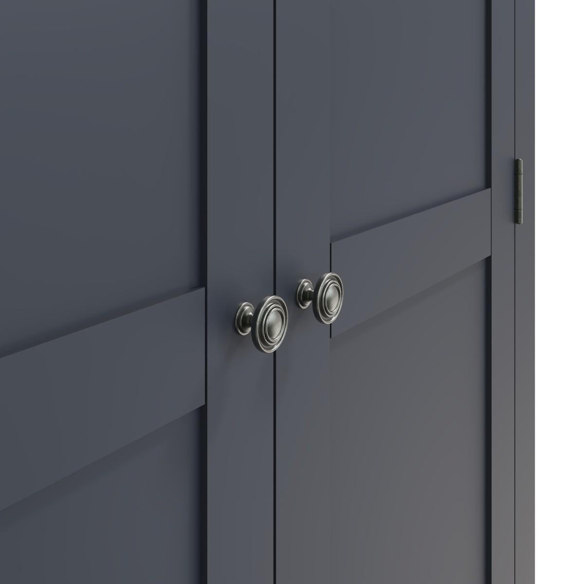 Decorative cornice and dark paint give the Simone collection a sophisticated feel. Solid pine and long-lasting MDF also mean the wardrobe is practical and easy to care for. A full-length hardwood rail provides full height hanging space for clothes whilst the closet adds personality to your bedroom. A robust combination of pine and MDF for prolonged life. Two doors with sleek panelling. Detailed pewter effect knob handles. Finished in a contemporary midnight grey paint