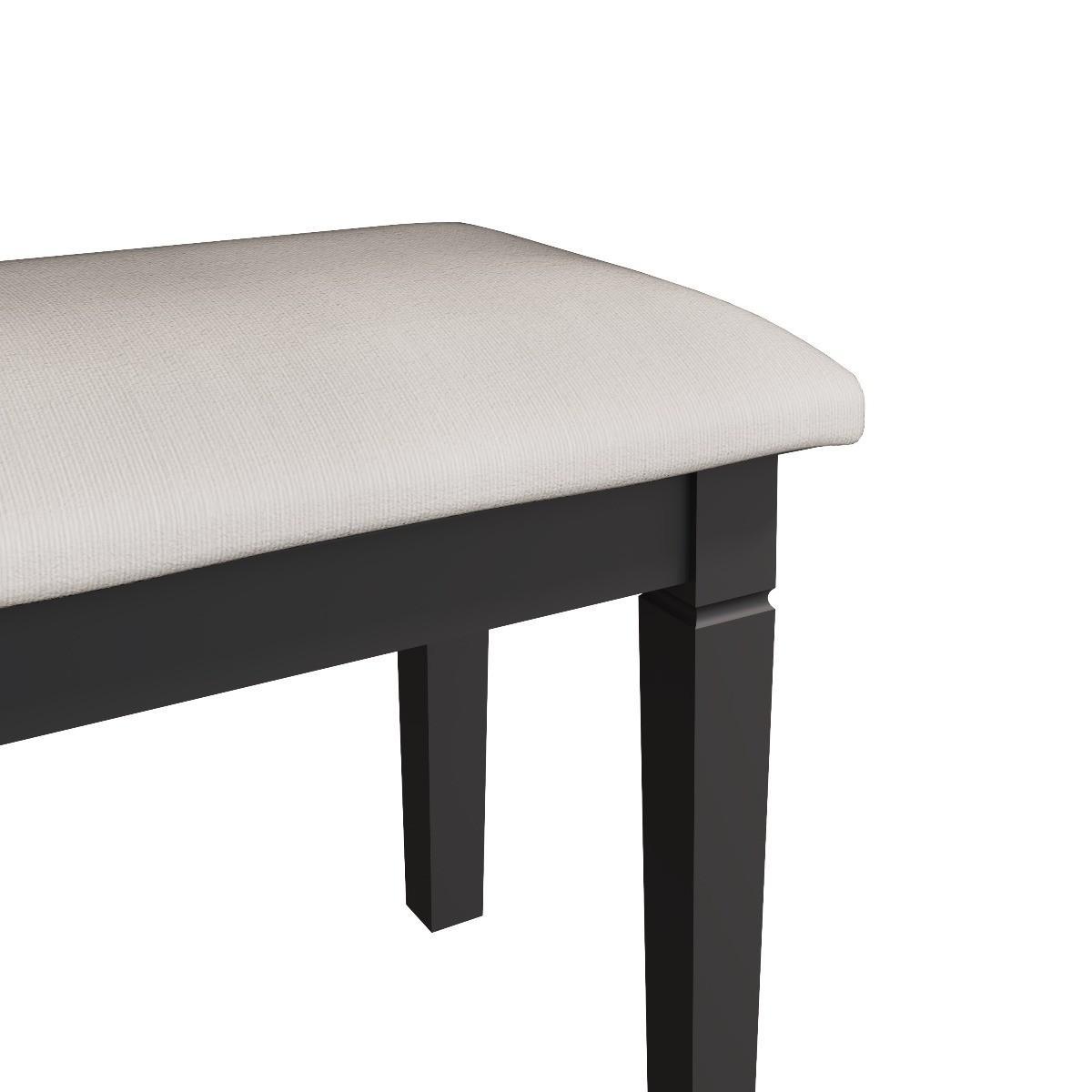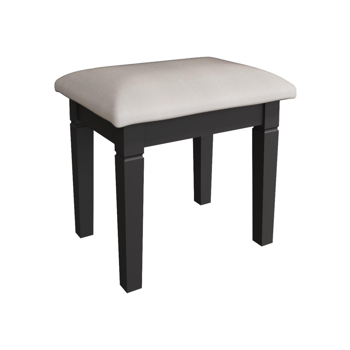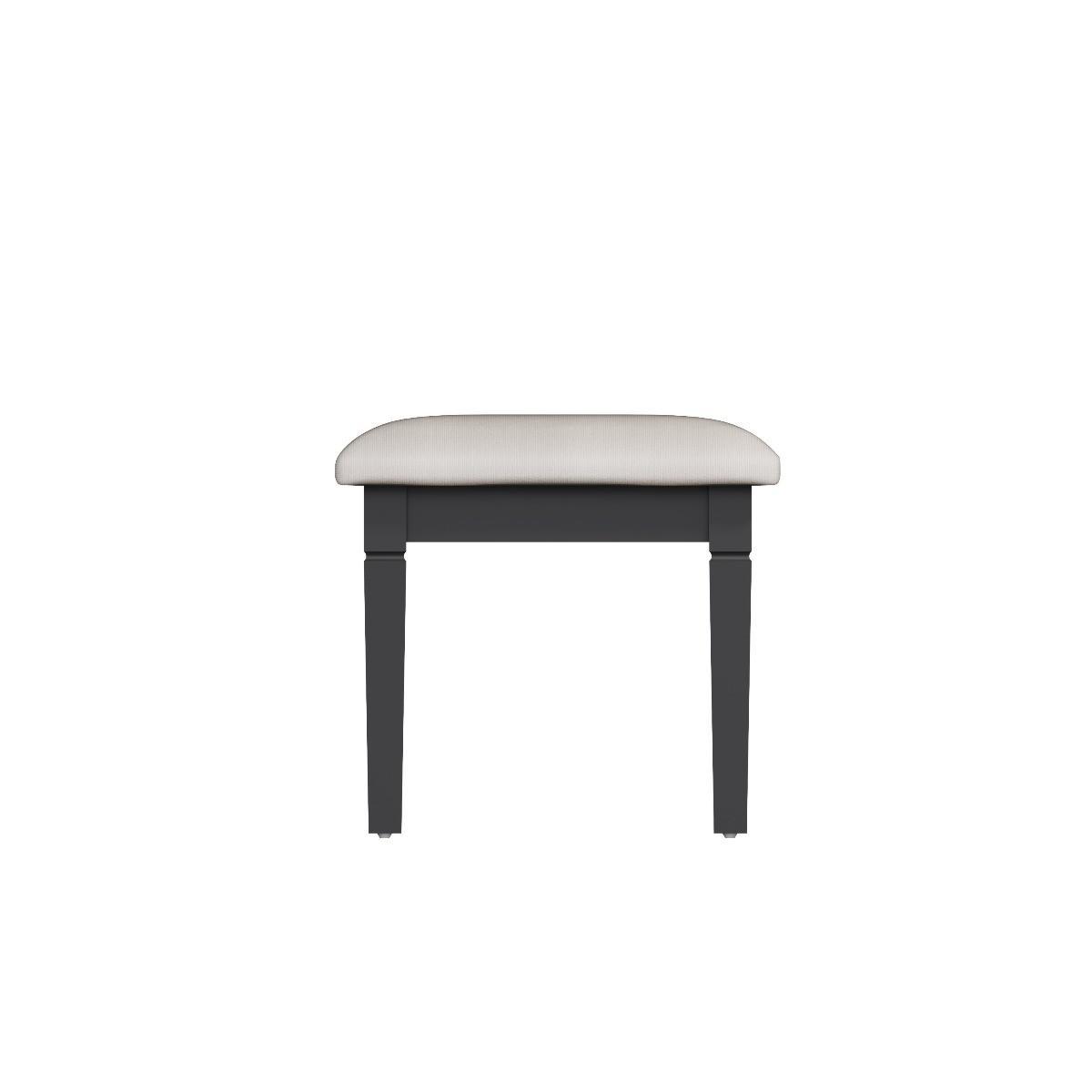 Decorative cornice and dark paint give the Simone collection a sophisticated feel. Solid pine and long-lasting MDF also mean the sturdy yet light stool is practical and easy to care for. Designed to sit with the Simone dressing table and mirror for a contemporary dressing area. A robust combination of pine and MDF for prolonged life Comfy upholstered seat. Complements the Simone dressing table and mirror. Finished in a contemporary midnight grey paint