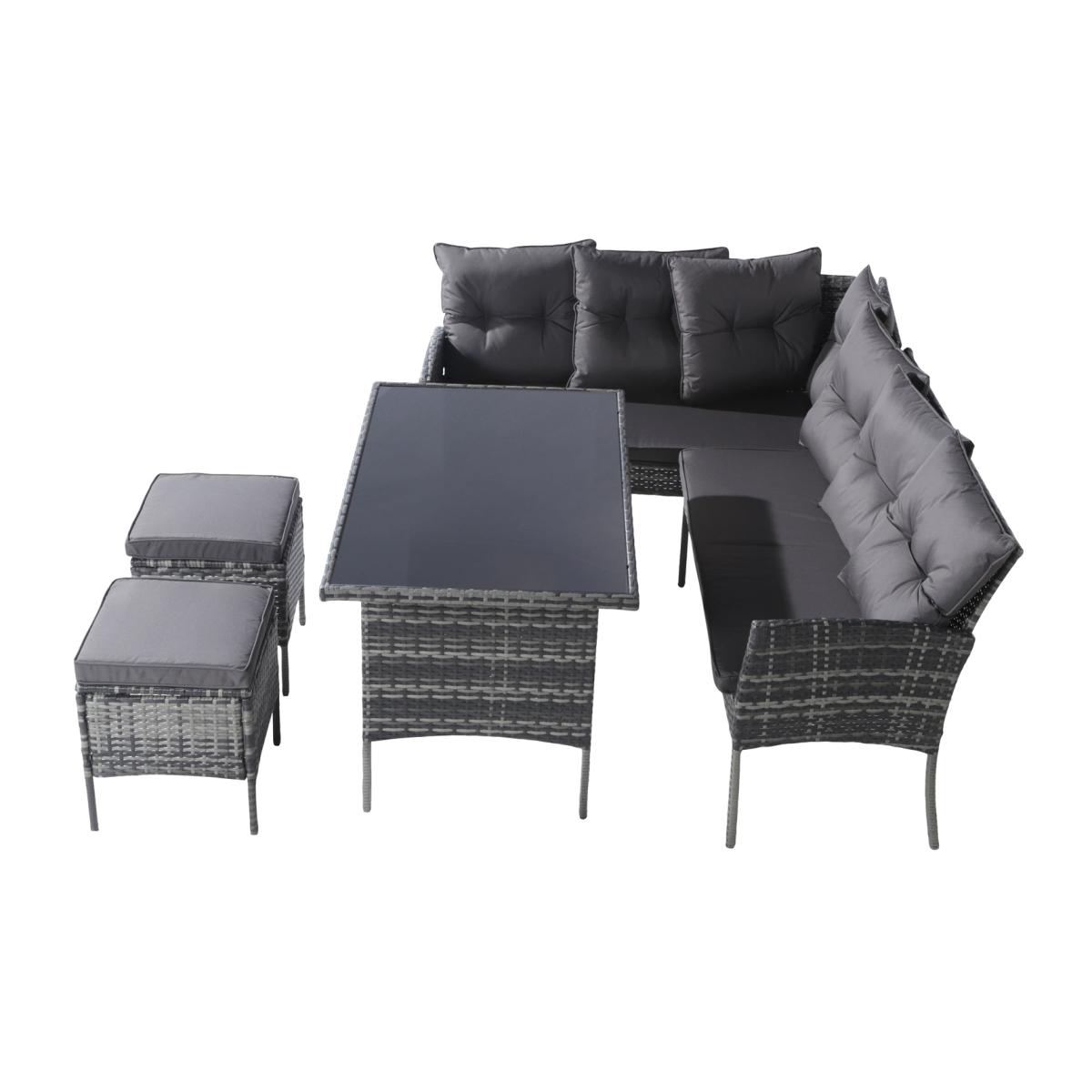 Durable Steel Structure:The steel structure gives the dining table sofa stool excellent load-bearing capacity and stability and can withstand the pressure caused by daily use for a long time, ensuring the long lasting durability of the furniture. Anti-UV PE Rattan: Using anti-UV rattan as the material can effectively resist the erosion of ultraviolet rays from the sun, extend the service life of the furniture, while maintaining the bright colours and beautiful appearance. Tempered Glass Tabletop: The dining table uses tempered glass as the tabletop material, which has excellent wear resistance and high temperature resistance, is easy to clean, not easy to scratch, and can maintain the smoothness of the tabletop. Removable and Washable Cushions: The sofa stool is equipped with removable and washable cushions, which is convenient for users to clean and maintain, keeping the seat clean and hygienic, and increasing the comfort and convenience of using the furniture. Rolled Cushion Cover Design:The rolled edge cushion cover design makes the seat more comfortable and fits the curves of the human body, providing a better sitting experience, while increasing the beauty and sophistication of the overall furniture.