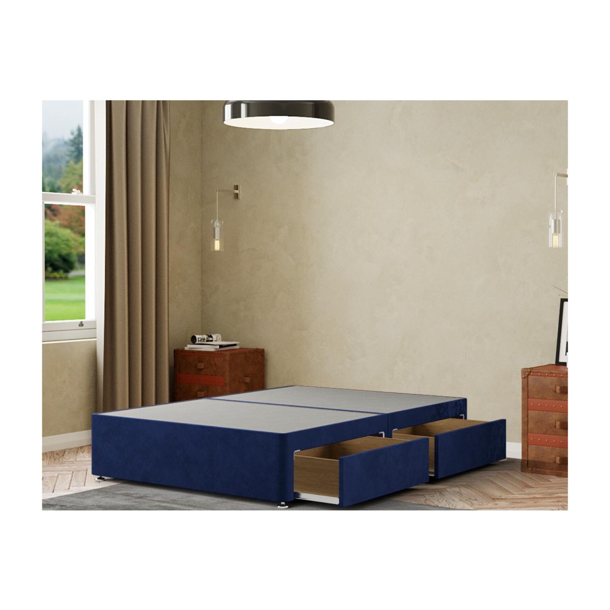 Introducing the Simple Divan Base with 2 Drawers - Quality Crafted in the UK for Your Comfort. Made in the UK The Simple Divan Base is a testament to British craftsmanship, ensuring a product of uncompromising quality. Colors and Fabrics Galore Express your style with a wide range of colors and fabric choices, making it easy to coordinate with your bedroom decor. Two Convenient Drawers Enjoy the added convenience of two spacious drawers for extra storage, helping you maintain a clutter-free bedroom. Available in All Sizes Whether you need a single, small double, double, king, or super king, we have a size to fit your space. Mattress Ready Designed to seamlessly complement your preferred mattress, the Simple Divan Base provides a sturdy and comfortable foundation for your sleep. Premium Quality Crafted with top-tier materials, this divan base guarantees durability and support for a restful night's sleep. Elevate your bedroom with the Simple Divan Base and experience the perfect blend of quality, customization, and convenience. Create your own sleep sanctuary with a touch of style,order yours today.