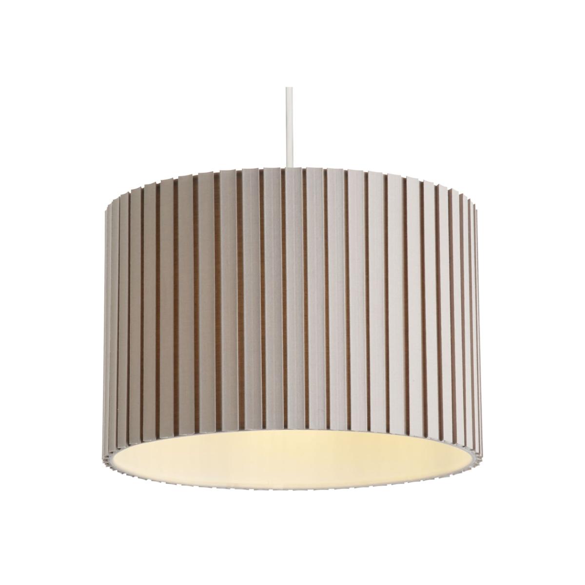 Designed to complement bedrooms or living rooms with effortless style, this shade has a sophisticated grey exterior that blends into various decor schemes while making a subtle yet impactful statement. Bulb not included. We recommend a B22, E14 or E27 bulb.