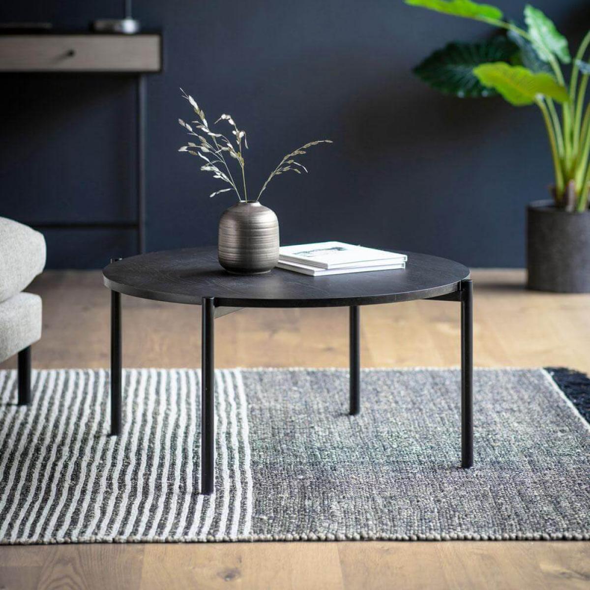 The Simple Noir Oak Coffee Table Black is a refined yet versatile addition to living space. Form and function infuse nicely in this design minded black table. This circular coffee table is finished with an oak veneer with absolutely no compromise on style. The black lacquer finish allows the wood grain to emerge with muted character. Best paired with a neutral or darker decor palette, this living room furniture is by no means imposing at 40cm in height and a good sized 85cm diameter. This table’s style could be described as discreet but classy, the slimline legs give a nod to Nordic interior design.