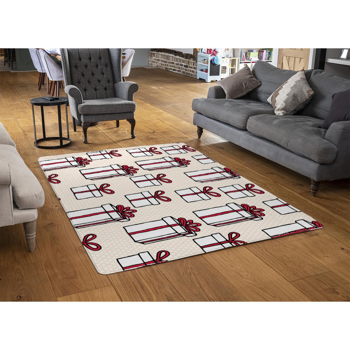 I love this simple pattern style rug for its playful take on gift boxes, which adds a fun, festive vibe to any space. Its red and neutral palette makes it versatile enough to complement both modern and traditional interiors. It works particularly well in casual living rooms, children’s spaces, or even as a cheerful accent in a more minimal scheme. For styling tips, consider pairing it with solid-coloured furniture to let the pattern stand out or layering it with a neutral or textured throw for added depth. Because of its size, it’s ideal for defining a seating area or adding visual interest to a breakfast nook without overwhelming the room.
