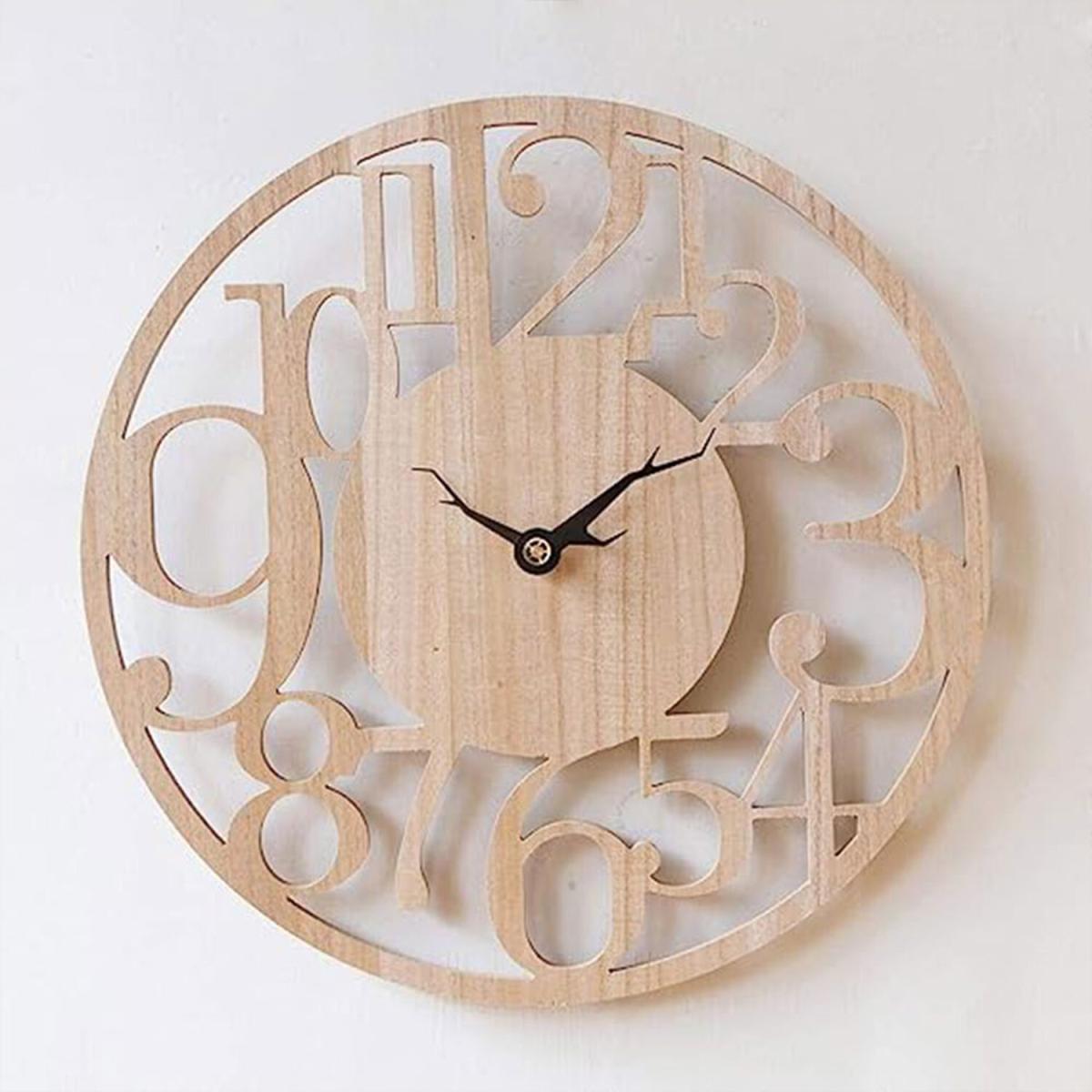 Made of wooden dial, no glass cover, open clock face. Absolute silent mechanism, no more tick-tack, quiet moving. So it will not affect your sleep at all. Precise quartz movements to guarantee accurate time. Easy to set the time with a small wheel on the back where the battery is housed. The hands are large, as well as the numbers so you can see the time clearly. Powered by one AA battery (not included), back slot design offers easy installation , just put a small nail through the hook and it securely hangs on your wall within a few seconds. Perfect for your living room, kitchen, bedroom, guest room, and even your bathroom! This vintage wall clock can be a perfect gift for housewarmings, weddings, and social gatherings, etc.