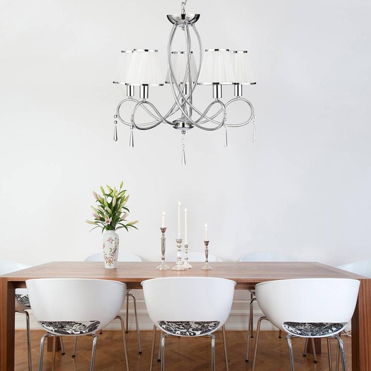 Simplicity 5 Ceiling Light Polished Chrome The Simplicity Chrome 5 ceiling light is an elegant mix of modern and classic design. With elaborate curved hoops, delecate jewels, and finished in stunning polished chrome, this light will stand out in any modern or traditional home. Fully adjustable, this light is perfect for any living area, or dining room. We recommend our E14 Warm White LED bulbs for a warm glow or our E14 Daylight LED bulbs for a crisp sharp look Simplicity 5 Ceiling Light Polished Chrome The Simplicity Chrome 5 ceiling light is an elegant mix of modern and classic design. With elaborate curved hoops, delecate jewels, and finished in stunning polished chrome, this light will stand out in any modern or traditional home. Fully adjustable, this light is perfect for any living area, or dining room. We recommend our E14 Warm White LED bulbs for a warm glow or our E14 Daylight LED bulbs for a crisp sharp look