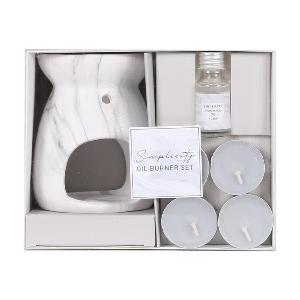 The Simplicity Oil Burner Set is a wonderful all-in-one home fragrance collection that keeps your space smelling gorgeous. The set comes with an oil burner, light, linen scented oil, and four tealights to make your home feel warm and cosy whilst emitting a fresh, comforting scent. Simply add a few drops of the oil to the burner, light a tealight, and place it under the burner to allow fragrance to whirl throughout the house.