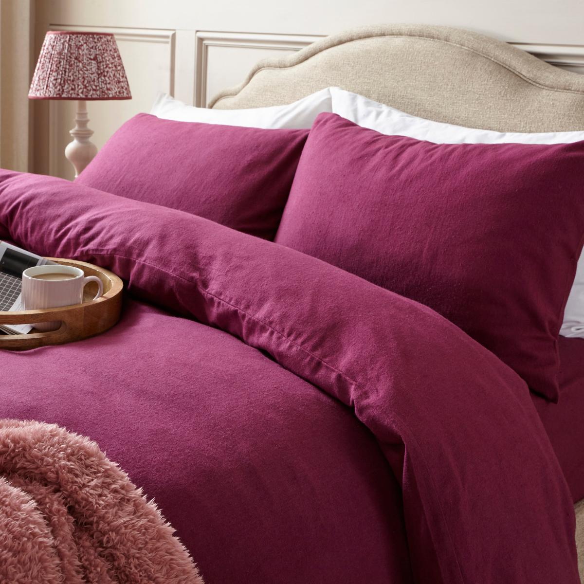 Simply Brushed Cotton Duvet Cover and Pillowcase Set Plum Purple