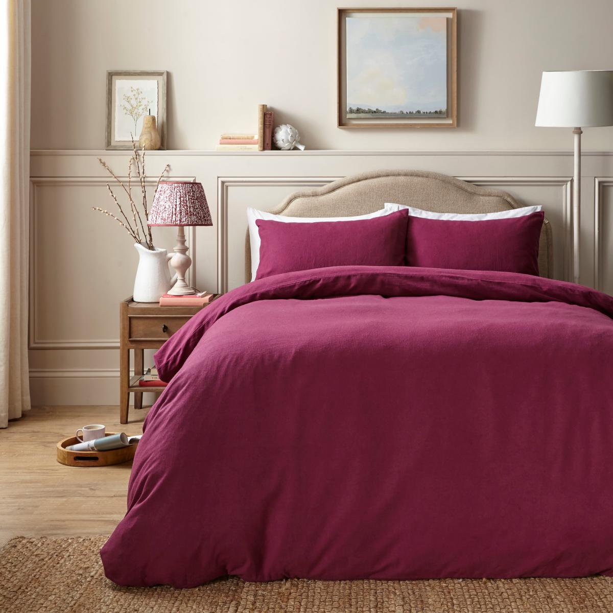 I love how this Simply brushed cotton set in plum purple adds a rich, cosy touch to both traditional and contemporary interiors. Its brushed finish gives it a soft, inviting feel, making it perfect for creating a relaxed, plush atmosphere in bedrooms with neutral palettes or jewel tones. To style it, consider layering with textured throws or mix and match with patterned cushions in complementary colours for added interest. This bedding works particularly well in understated, minimalist schemes where a pop of colour can enhance the overall look, or in vintage-inspired interiors for a touch of regal warmth. Practical tip: pairing it with white or cream linens can help balance the deep hue for a fresh and polished look.