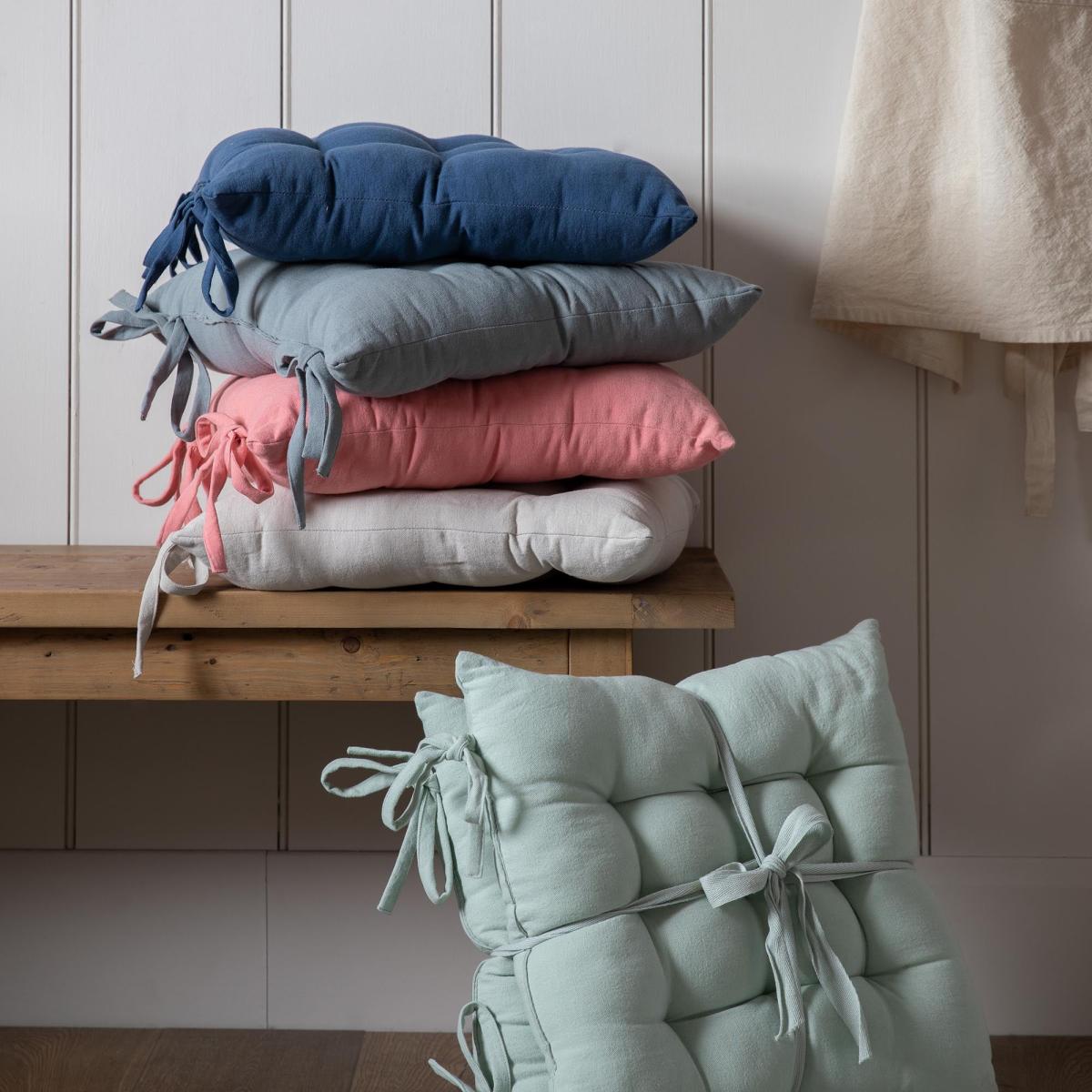 Update your tired and dull chairs with the Simply Cotton Plain Seat Pads with an elegantly styled 9 pin-tuck design. Made from woven cotton and filled with durable polyester filling, this seat pad will be sure to provide you with a plump and comfortable seat. Tie fastenings ensure these seat pads will stay securely attached to your chair while the neutral colour options and simple plain design creates a delightful appearance.