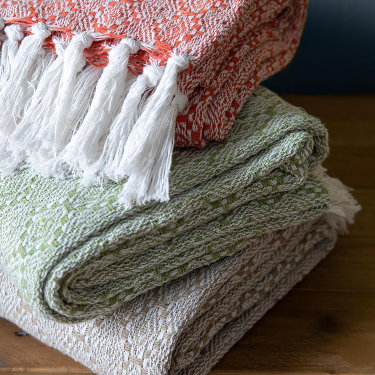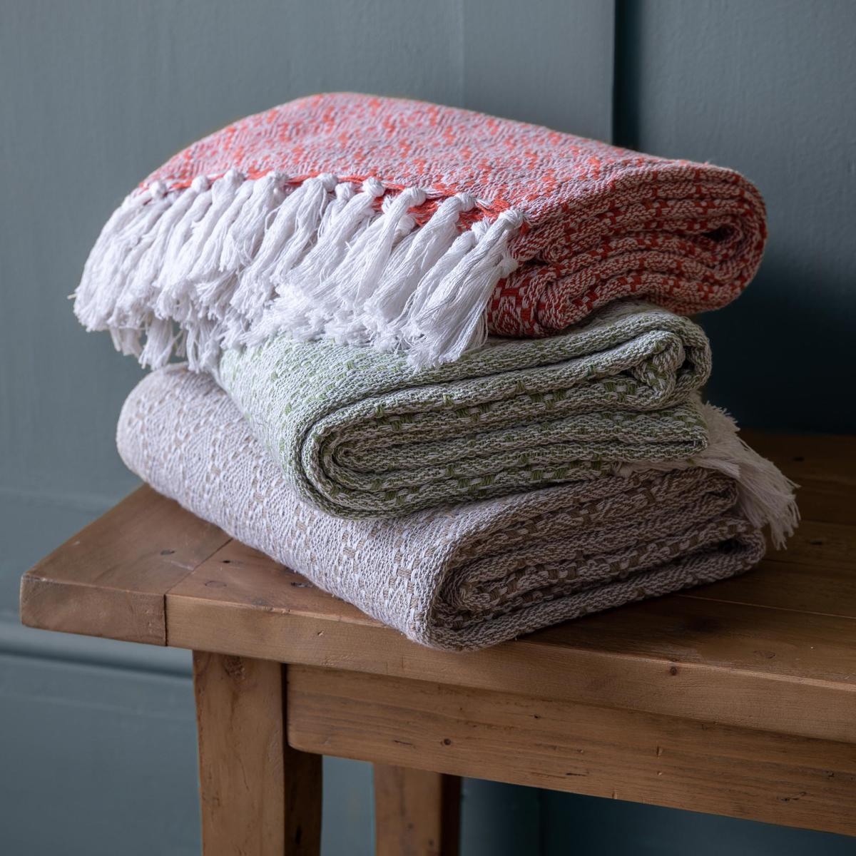 Introducing the rustic styles of this diamond patterned throw woven from recycled cotton and available in a range of multiple colourways. This throw comes rolled and presented using a cream herringbone ribbon for convenient storage, finished with textured tassels, and machine washable properties for easy cleaning.