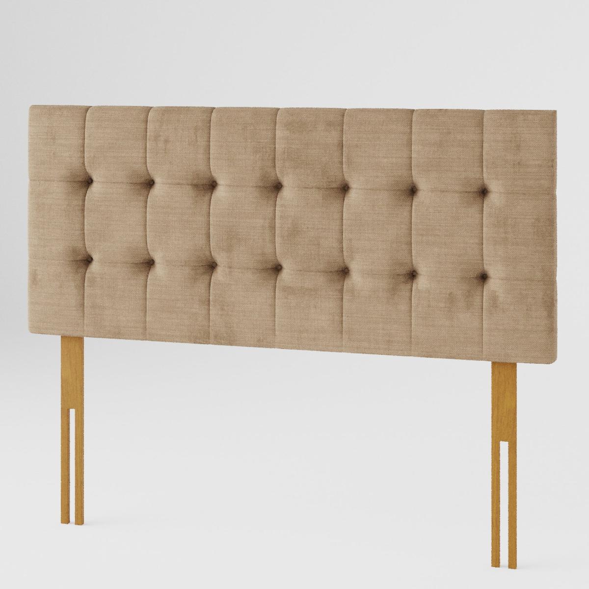 * Velour fabric headboard* Square buttoned headboard design* Contemporary Sinatra range* Hand upholstered with deep padding* Solid mahogany struts* 60cm headboard panel height* 40mm deep polyester padding* Compatible with standard size UK bed bases and divans* Manufactured in the UK Create a statement look in your bedroom with this striking headboard from the Sinatra range, offering a comfortable and relaxing recline while refreshing your space. Showcasing a decorative look, this headboard is hand upholstered in a velour fabric with contemporary square pattern with deep buttoned design details and deep padding for added comfort. Handcrafted with a 15mm thick panel and with solid mahogany struts ensure your headboard is sturdy and long lasting for years to come and the deep polyester padding will add a comfortable and supported surface. Available from single to super king sizes, this headboard is suitable for all standard bed bases making it a convenient and simple upgrade to your existing bed frame and a range of contemporary colours make it a versatile choice for various bedroom aesthetics.