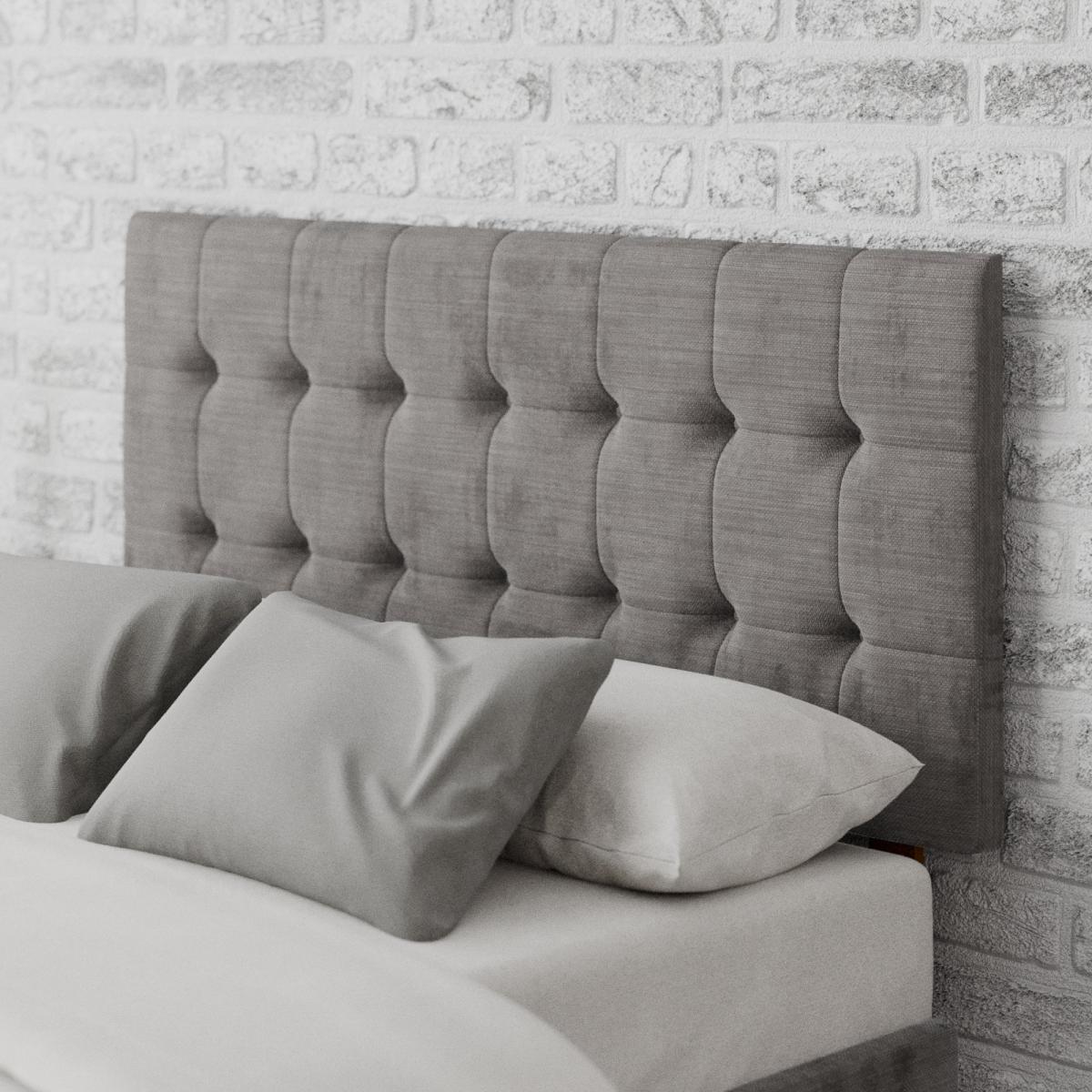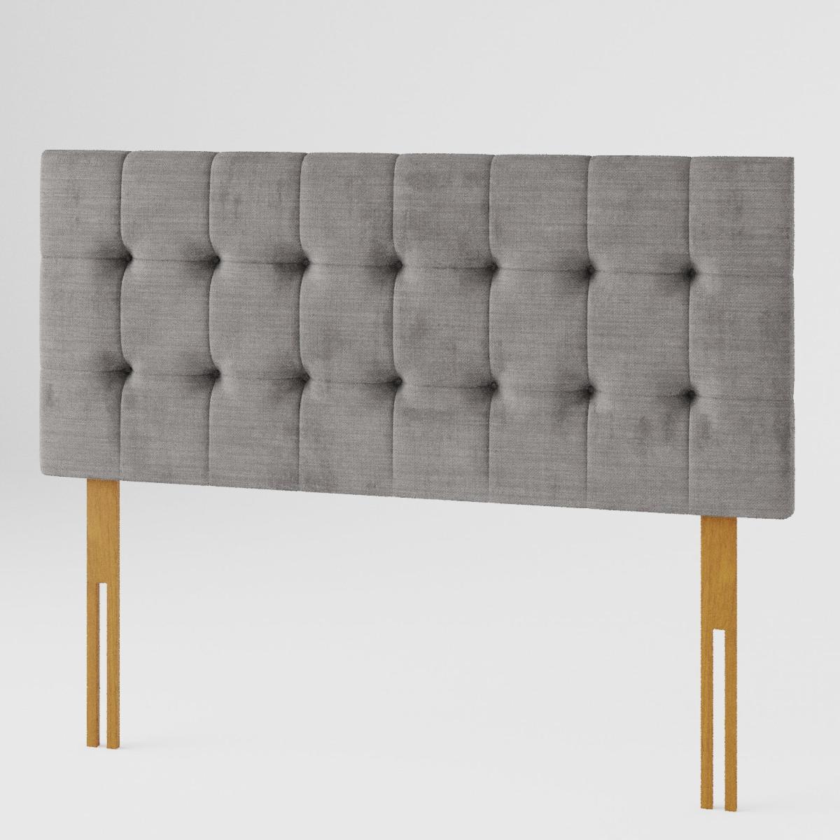 * Velour fabric headboard* Square buttoned headboard design* Contemporary Sinatra range* Hand upholstered with deep padding* Solid mahogany struts* 60cm headboard panel height* 40mm deep polyester padding* Compatible with standard size UK bed bases and divans* Manufactured in the UK Create a statement look in your bedroom with this striking headboard from the Sinatra range, offering a comfortable and relaxing recline while refreshing your space. Showcasing a decorative look, this headboard is hand upholstered in a velour fabric with contemporary square pattern with deep buttoned design details and deep padding for added comfort. Handcrafted with a 15mm thick panel and with solid mahogany struts ensure your headboard is sturdy and long lasting for years to come and the deep polyester padding will add a comfortable and supported surface. Available from single to super king sizes, this headboard is suitable for all standard bed bases making it a convenient and simple upgrade to your existing bed frame and a range of contemporary colours make it a versatile choice for various bedroom aesthetics.