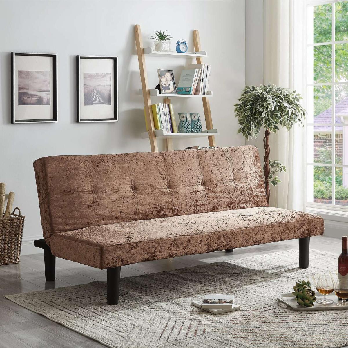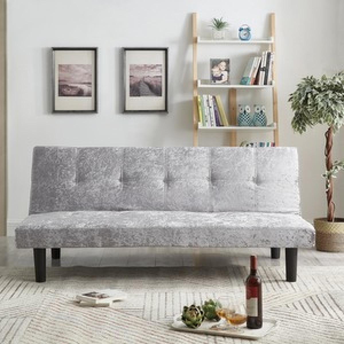 The crush velvet finish provides a luxurious, soft sitting and sleeping space for anyone to enjoy. Ideal if you're short on space but love welcoming guests into your home, this contemporary sofa bed will make a practical yet stylish addition to your living space. Made from crush velvet it features additional padding and stitch detailing for that all-important designer finish. Designed to seat three people when used as a sofa, simply click the easy-to-use mechanism to convert it into a single bed in an instant! It's compact enough for even the smallest of spaces - yet so comfortable that you might have to be careful your guests don't end up outstaying their welcome! It offers three different positions - sitting, reclining or sleeping. The high-quality crush velvet material covers high-density foam, on a solid wood frame. Minimal assembly required - just screw on the legs.