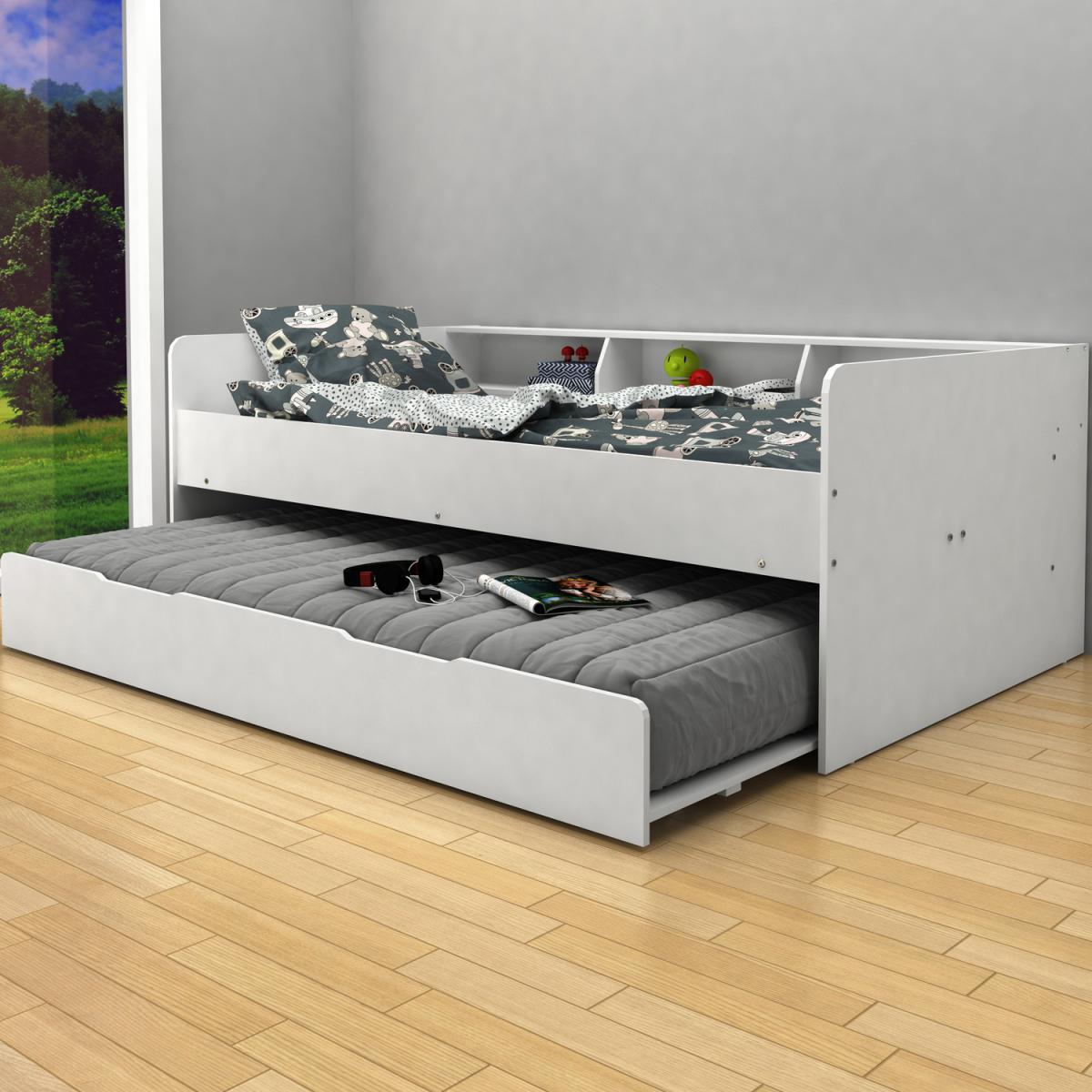 A simple yet stylish design, this daybed with trundle offers an excellent addition to both bedrooms and guest rooms. A durable bed with shelves at the back for storage and wooden slats for mattress support. The trundle can easily be pulled out to create an extra sleeping area for another person. Both bed and pull-out standard single mattress in size. We recommend mattress size for the trundle: H.10 x W.90 x D.190 cm. The trundle height can be measured for maximum height tolerance.