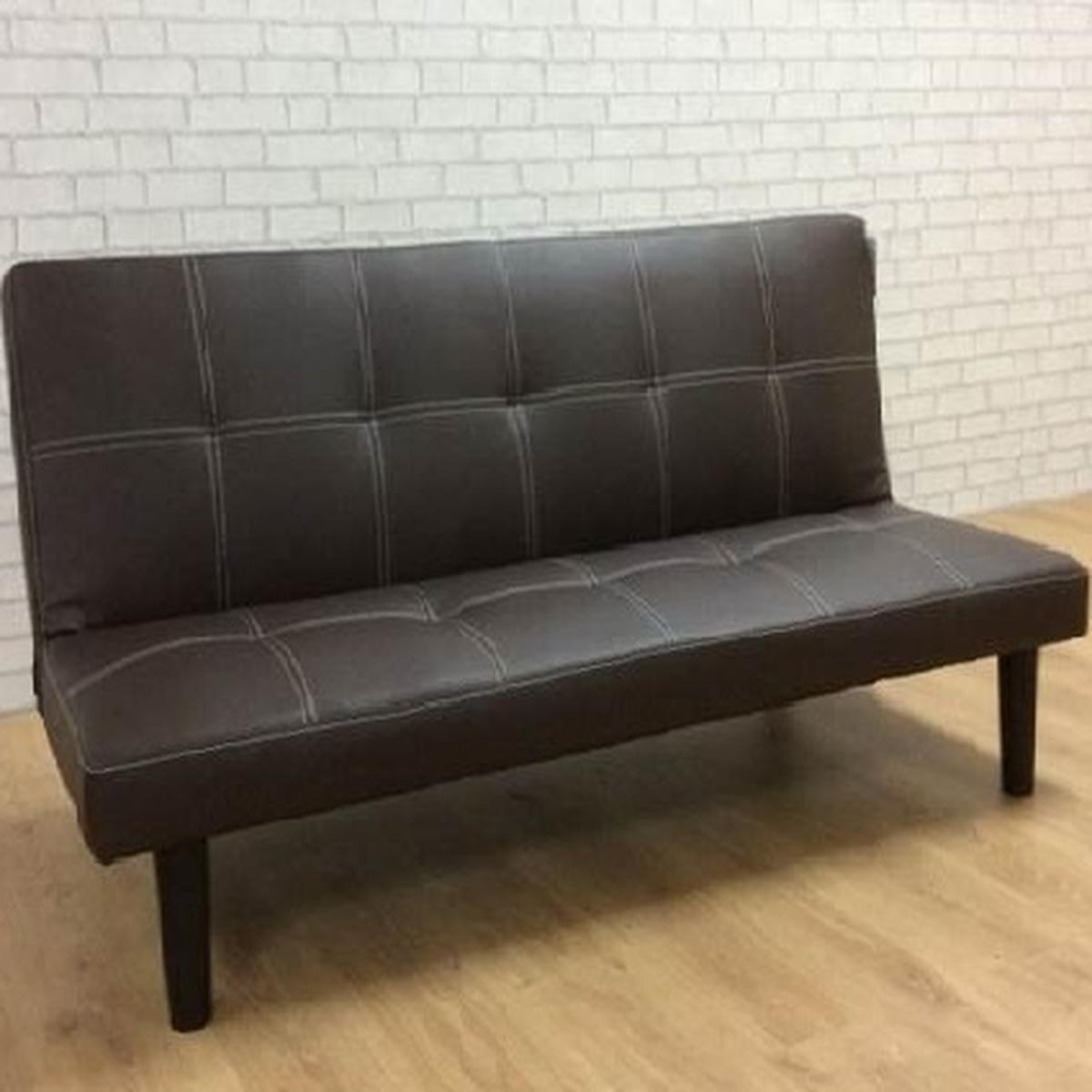 This beautiful faux leather sofa bed is a comfortable option for your guest bed needs. The faux leather finish provides a luxurious, soft sitting and sleeping space for anyone to enjoy. Ideal if you're short on space but love welcoming guests into your home, this contemporary sofa bed will make a practical yet stylish addition to your living room. Made from brown faux leather, it features additional padding and stitch detailing for that all-important designer finish. Designed to seat three people when used as a sofa, simply click the easy-to-use mechanism to convert it into a single bed in an instant! It's compact enough for even the smallest of spaces - yet so comfortable that you might have to be careful your guests don't end up outstaying their welcome! It offers three different positions - sitting, reclining or sleeping. The high-quality faux leather material covers high-density foam, on a solid wood frame.