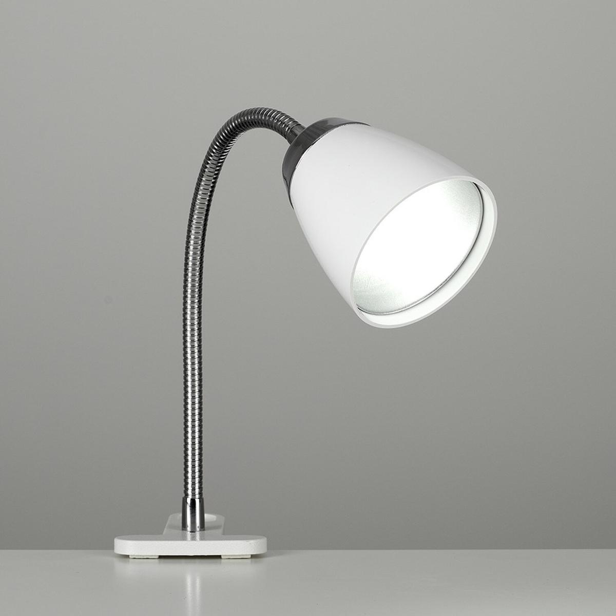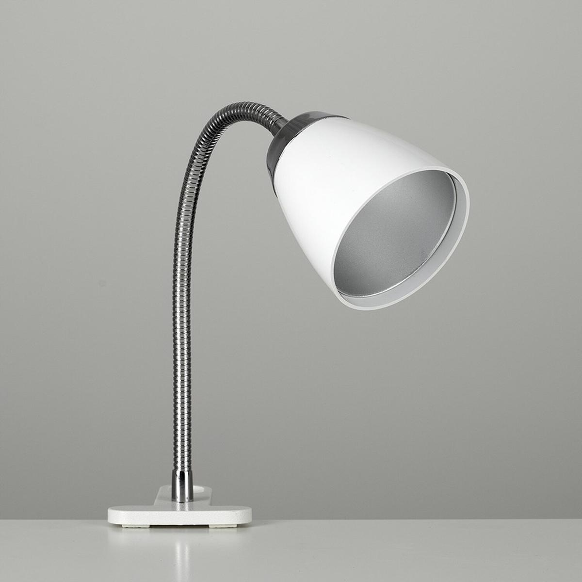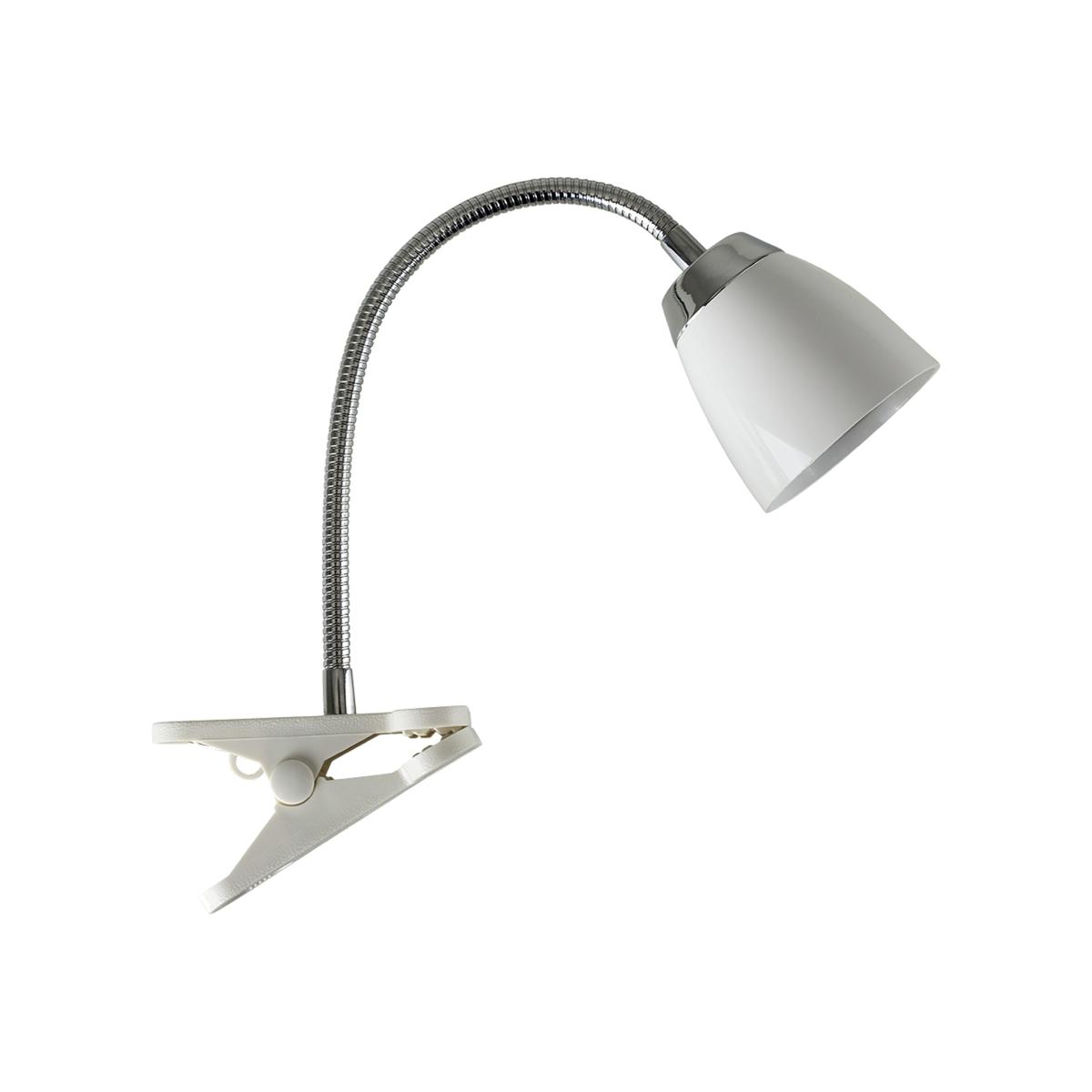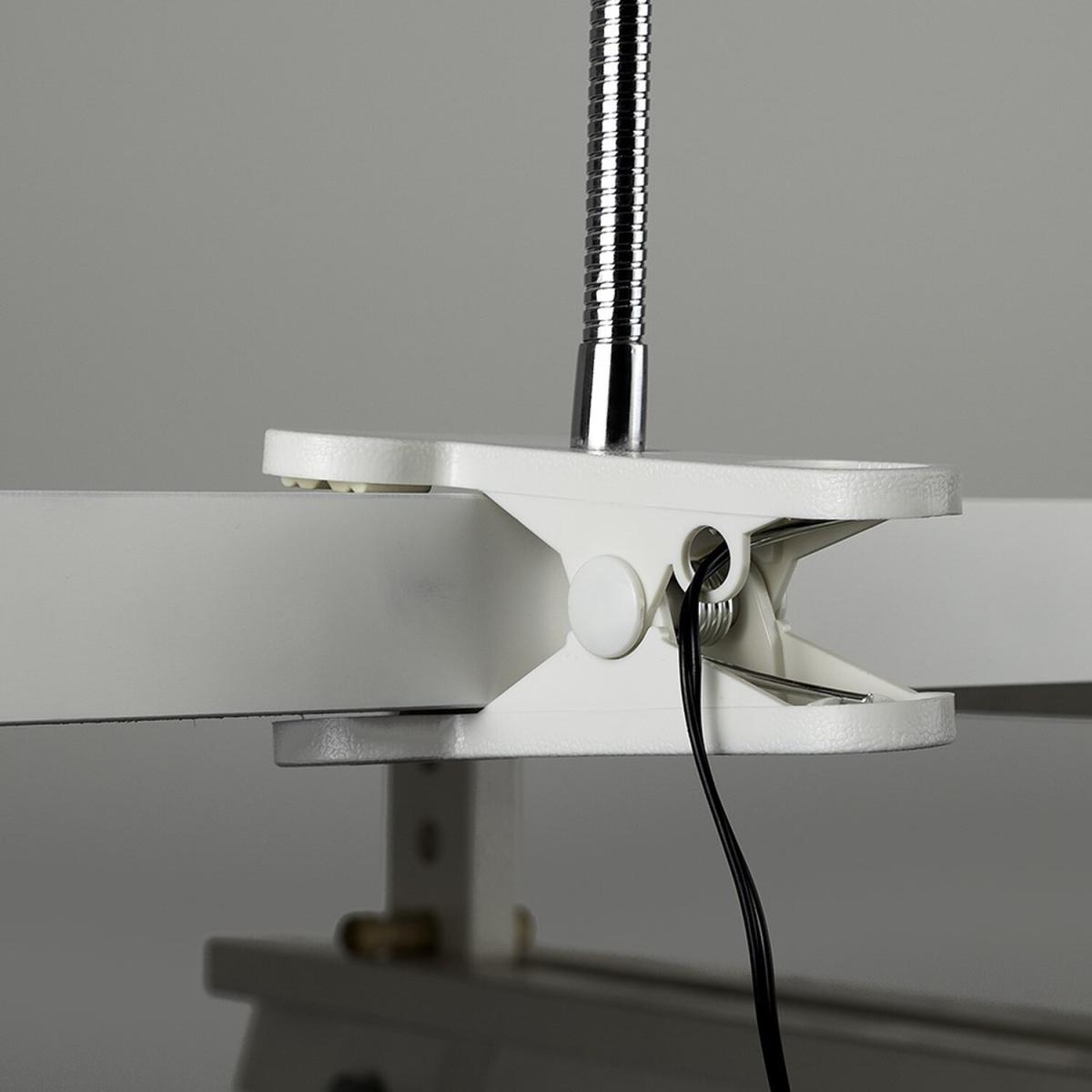 Single Gloss White And Chrome Clamp Clip On LED Desk Spotlight Table Light - White
