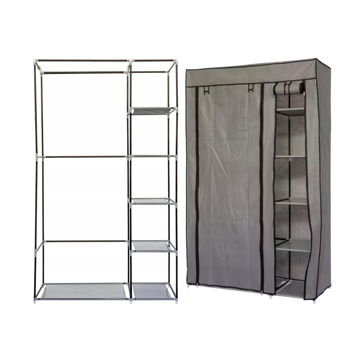 Single Fabric Canvas Bedroom Wardrobe With Shelving Hanging Rail Clothes Storage Cupboard Unit. Whether youve finally run out of space in your existing wardrobe, or need a lightweight but reliable alternative to a heavy wooden style, the Eurotrade Canvas Effect Wardrobe provides a safe and attractive home for your clothes, shoes and accessories. Great as a temporary or permanent storage solution, the canvas wardrobe works just as well in the master bedroom as it does in a guest room, rented accommodation, university halls, caravan or holiday home. Wardrobe 175x107x45cm , Tube dia: approx. 16mm, Thickness approx. 0.25mm, Material: 70g non-woven fabric, Color: Grey, item weight approx. 4kgs