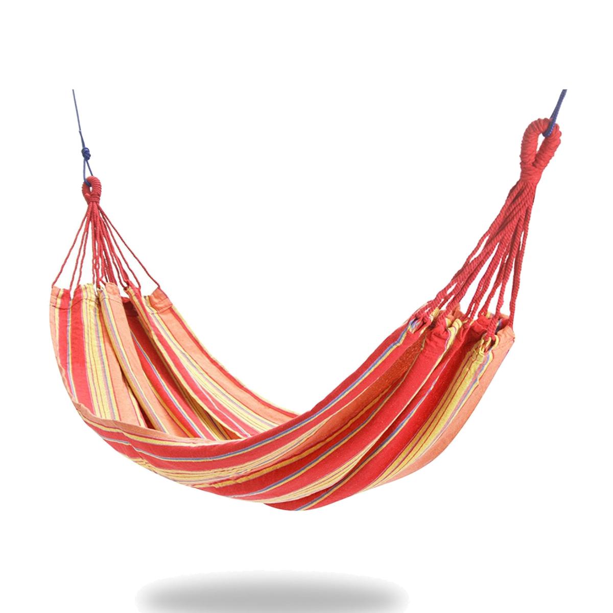 Let yourself go in the comfortable swing of a Rainbow Hammock. Having been tested to carry a load of up to 120kg, this strong hammock is a durable and sturdy way to recline in your home and garden. Complete with a handy carry bag, you can take this beautifully coloured hammock on camping trips, the beach and wherever you go. The compact hammock can also be stored easily when not in use. Pack this vibrant hammock up and take it with you to festivals or even just to your local park for a wonderfully comfortable and unique way to relax. Complete with included support ropes and a thick strong fabric, you'll be using the beautiful hammock year after year.
