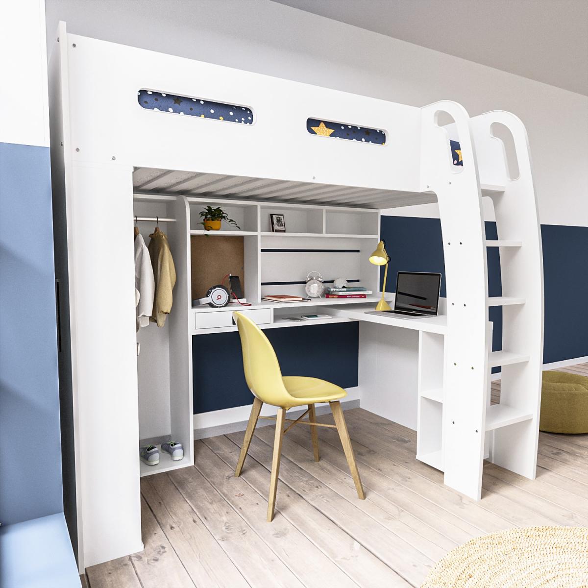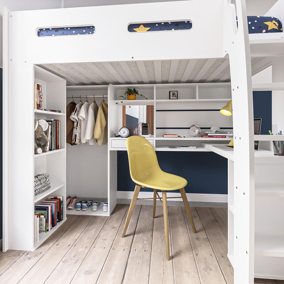 I love the white high sleeper with study and storage integrated - it’s a real space-saver that offers practicality and clean lines, making it a versatile addition to various kids’ interiors. It works particularly well in contemporary or Scandi schemes, where the white finish keeps the room feeling bright and open. To style it effectively, consider adding colourful accessories like cushions, bedding, or rugs to introduce personality without cluttering the space. Using wall decals or hanging organisers on the sides can further personalise the area and keep essentials within reach. Overall, it’s a smart choice for maximizing space while keeping the room stylish and functional.