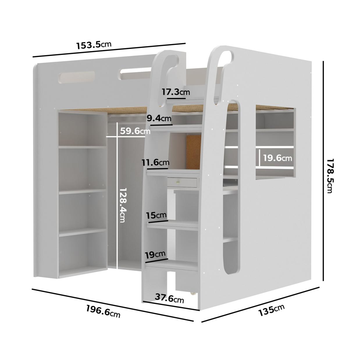 Single High Sleeper Bed with Desk and Wardrobe Storage in White - Carter