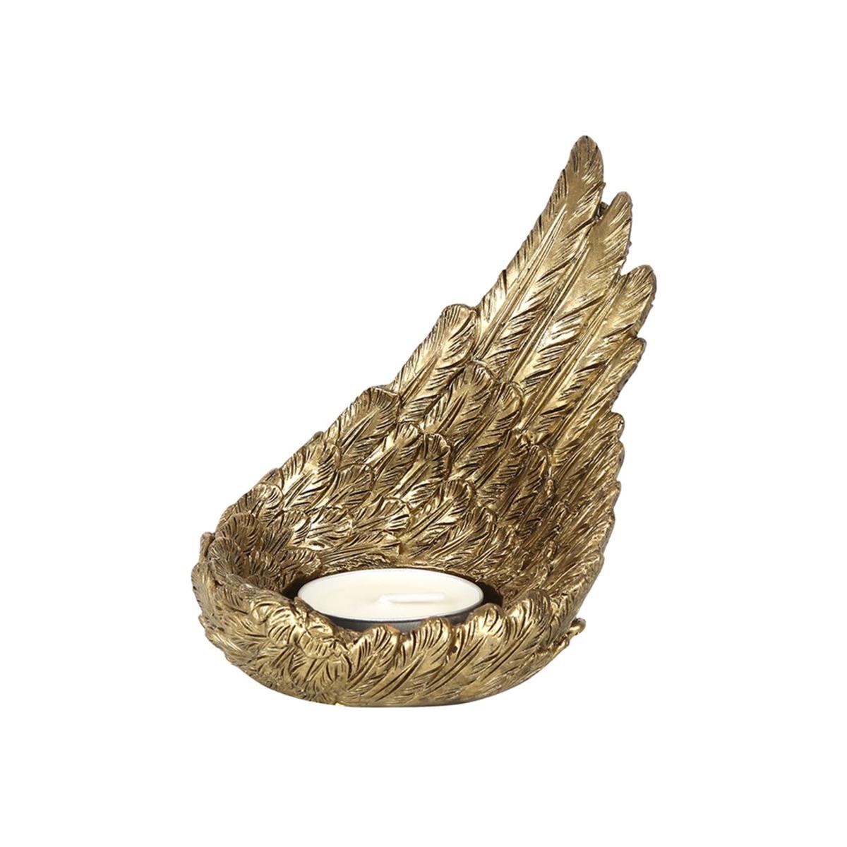 Elevate your decor with our Single Raised Angel Wing Candle Holder. This exquisite tealight holder showcases a stunning raised angel wing design, adding a touch of elegance to any setting. The antique gold finish exudes vintage charm that effortlessly complements diverse interior styles. Illuminate your space with a gentle and inviting glow, creating a soothing and warm ambiance. Add a timeless allure to your decor with our Single Raised Angel Wing Candle Holder, where celestial elegance meets understated beauty.