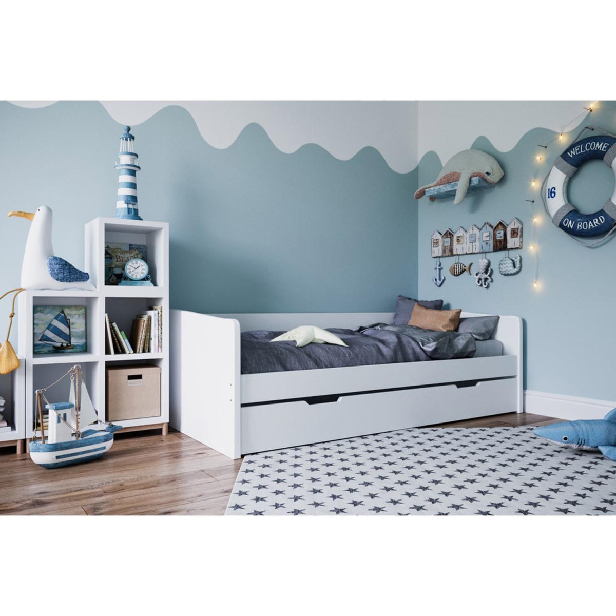 This stylish Kidsaw Kudl day bed is sure to stand out in any room. It features a contemporary design and painted white finish. it is ideal to put in a children's bedroom or spare room. The day bed can be used as a sofa by day and a bed by night, with the included trundle, it is perfect for sleepovers or overnight guests. Mattresses not included. Day bed takes a standard UK single of dimensions W.90 x L.190 cm. Trundle takes a mattress of dimensions H.15 x W.90 x D.180 cm.