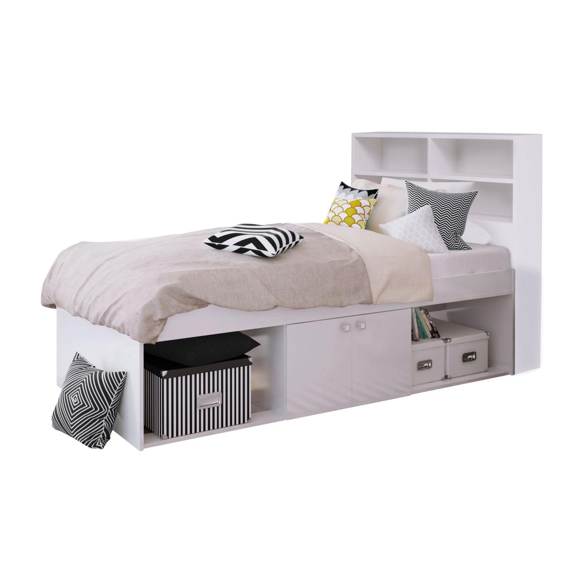 The Kidsaw cabin bed is the perfect answer to your child's or teenager's sleeping needs. A single bed frame with plenty of storage. Depending on the version bought, they offer different storage options. A version with 2 open areas, where small storage boxes can be placed (see pictures) and a middle cupboard to hide all the messy bits or the multi drawer version that comes with easy-glide pull out 4 drawers. Also the added feature with the bookcase headboard for even more storage. Takes a mattress size L190 x W90 (not included) Available colours: White / Black / Grey
