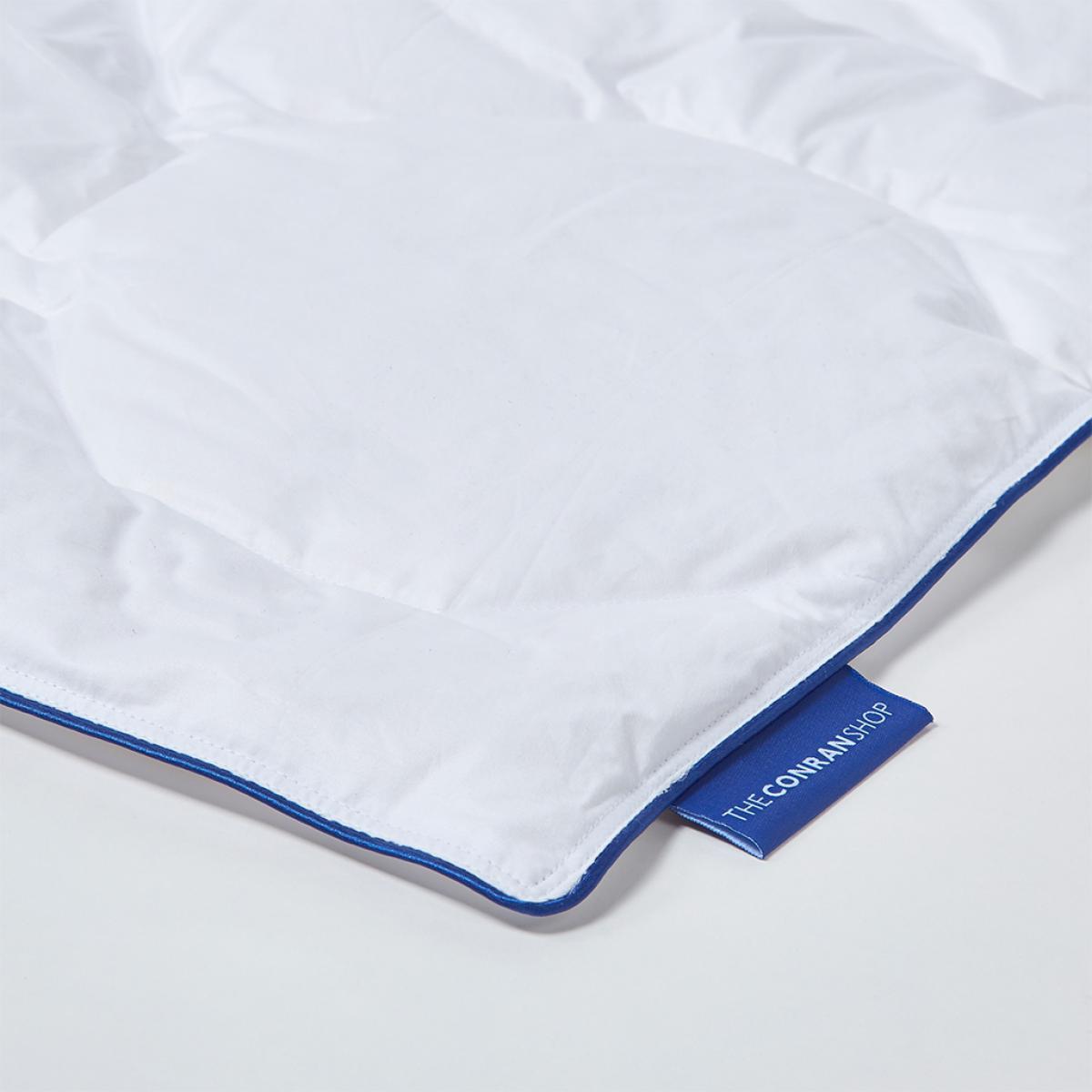 The single-sized, Conran-exclusive Summer 9-Tog Duvet is invaluable for sleeping through restless spring-summer nights. Each luxurious duvet boasts neat octagonal chambers sewn into 100% super cambric cotton casing and is packed full of eco-friendly and ethically sourced goose down from quality-assured farms tucked away in the Austrian mountains. Stamped with DIN CERTCO, The Happy Geese Guarantee and TRAUMPASS certifications amongst others, these are only awarded to premium products which do not originate from live animal-plucking, use top-quality down and feathers from humanely farmed animals, and which are free from harmful substances. Plus, the NOMITE seal of approval ensures that each piece of bedding is suitable for allergy sufferers. Investing in a weighty, warming duvet is optimal for a good night’s rest, yet such a thing was relatively unknown in the UK until the early 1960s, when our founder Sir Terence Conran brought back the esteemed duvet back from Sweden and stocked his first shop full of these feather-filled necessities. Care instructions: Dry clean only.