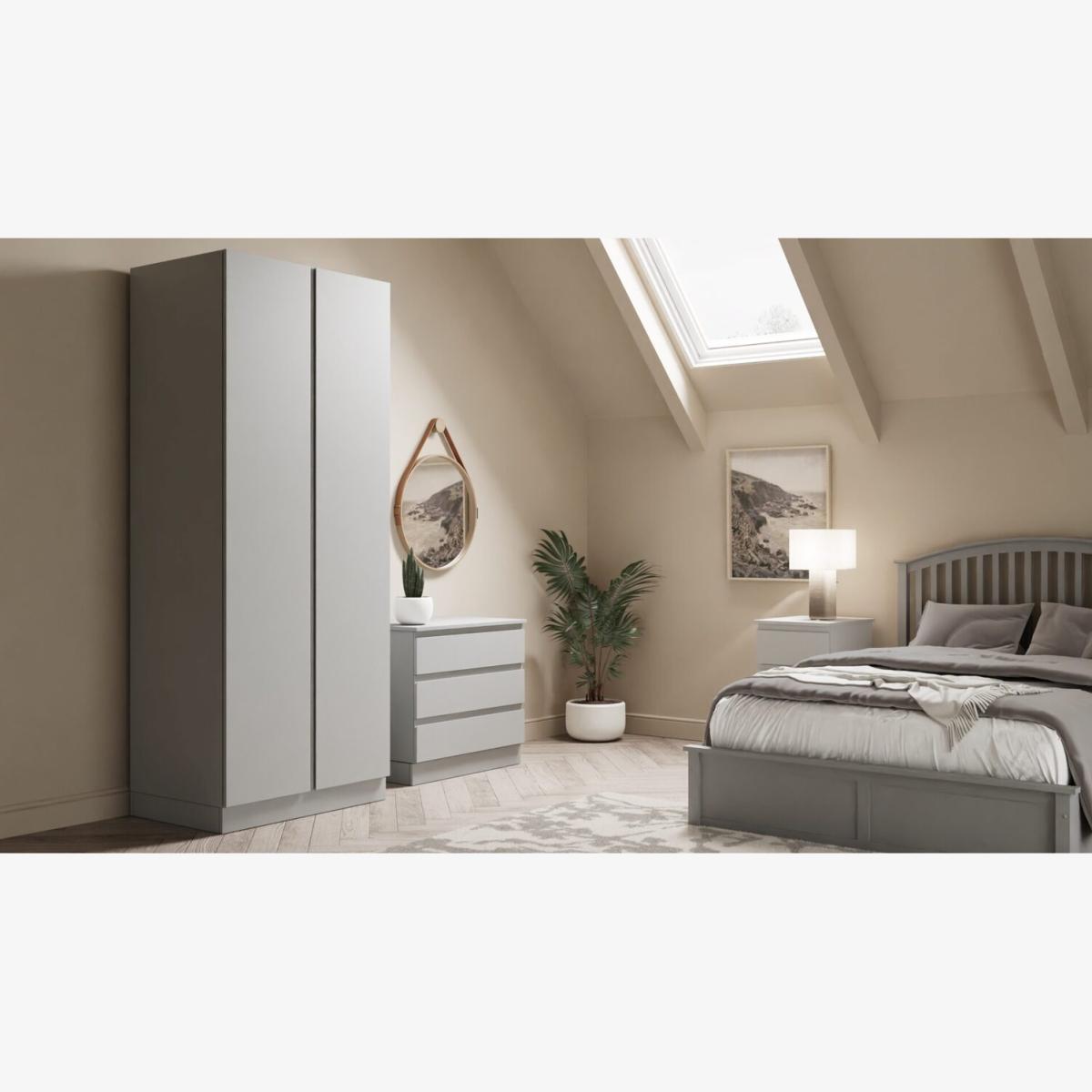 I’m a fan of this light grey single wardrobe for its clean, handleless design and subtle hue that slots effortlessly into modern or Scandi-inspired bedrooms. The J-pull doors keep the look streamlined, while the internal shelves give you versatile storage for everything from folded knitwear to boxes of seasonal accessories. For styling, tuck a slim vase or a small potted plant on top to soften its lines, and pair it with warm wood or rattan accents elsewhere in the room. Inside, use matching storage bins or woven baskets on the shelves to keep things organised and visually calm.