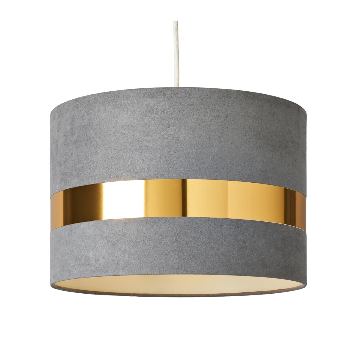 Add subtle glamour with the Siobhan Metallic Band Drum Easy to Fit Velvet Shade, available in soft pink or grey with a shimmering brass metallic accent. Whether used in a bedroom or study, it softens overhead light while enhancing your decor. Simply attach to an existing pendant, no electrician required.