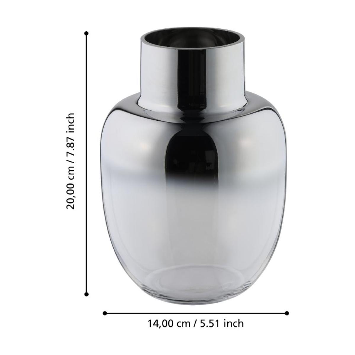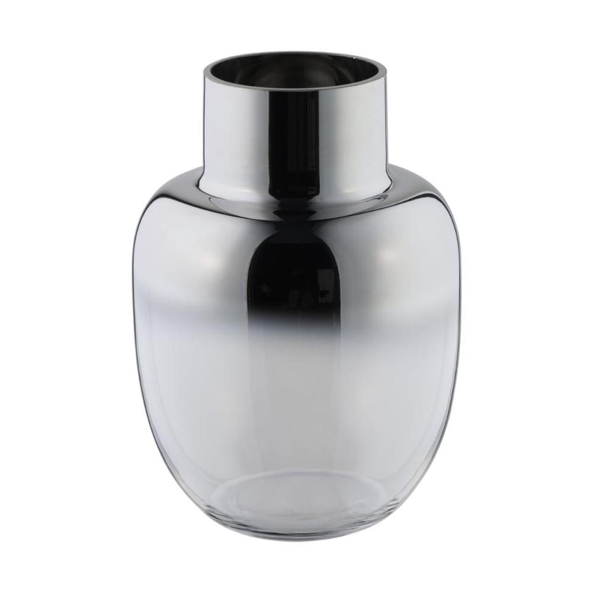 The glass vase brings a clear, cool elegance to your living rooms with its silver-coloured mirror. The lower half remains transparent, while the upper part sets special accents with its reflective surface. The harmonious shape with a light belly and cylindrical neck gives the vase a modern and at the same time timeless look. With a diameter of 14 cm and a height of 20 cm, it is perfect for medium flower arrangements, decorative branches or as a stylish single piece. Whether on chests of drawers, tables or on shelves - the vase looks noble and at the same time restrained. The high-quality glass ensures a shiny appearance and easy maintenance.