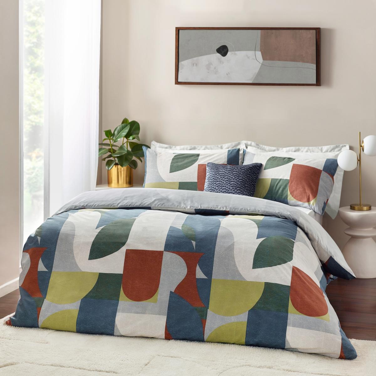 Blending modern neutrals with nature-inspired tones, the Siresa duvet cover set is an inspiring print that will stand the test of time. Featuring organic geometric shapes in a variety of uplifting shades, this is a truly minimalist yet modern design. This is a great way to create impact with simple patterns and enhance your bedrooms interior.