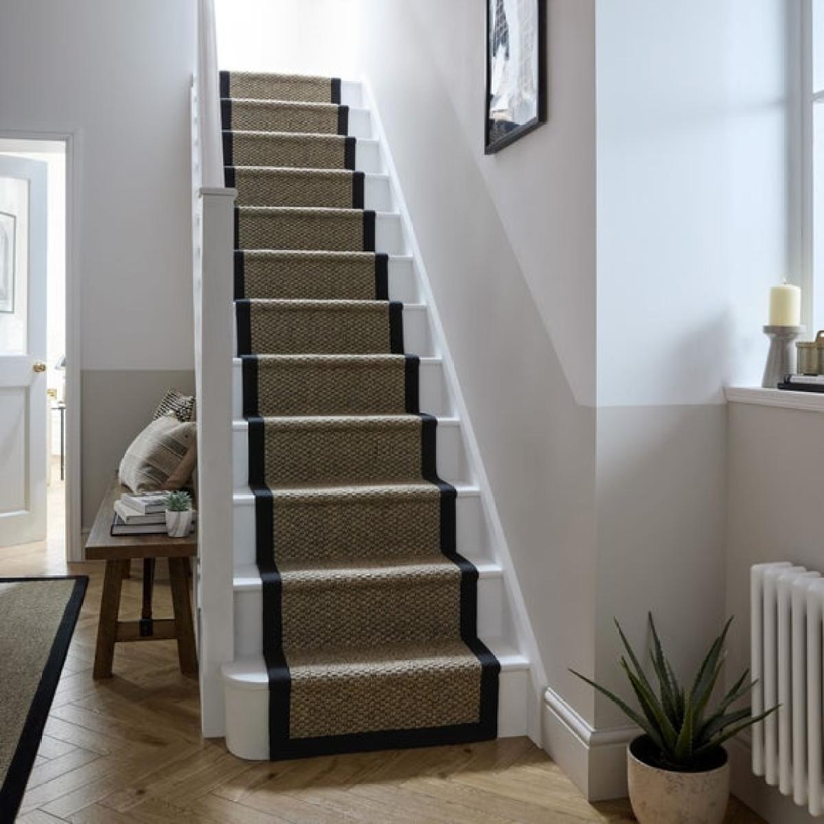 * Easy Care * Anti-Slip Backing * Sisal Look Pile Introduce a touch of nature to your space with the Sisal Look Washable Border Stair Runner. This rug mimics the natural look of sisal, whilst being made from durable recycled polyester. Perfect for high-traffic staircases, the washable feature ensures easy maintenance, while the anti-slip backing keeps the rug securely in place. Ideal for those looking for an easy-care, stylish solution to decorate your staircase. The Rug Pictured is: 160cm x 230cm. Care Instructions: Shake or vacuum to remove and loosen fibres, dirt and debris using a nozzle attachment. In the case of spillage, blot with a clean cloth. Place into the washing machine on a gentle cycle at 30 degrees and air-dry flat. For best results lay flat and reshape as soon as possible. We recommend our small and medium size washable rugs up to 120 x 170 will fit most washing machines sizes between 8 - 10kg. Please check your manufacturer guidelines before washing and do not overload the drum. For Large and High pile washable rugs a launderette service may be required.