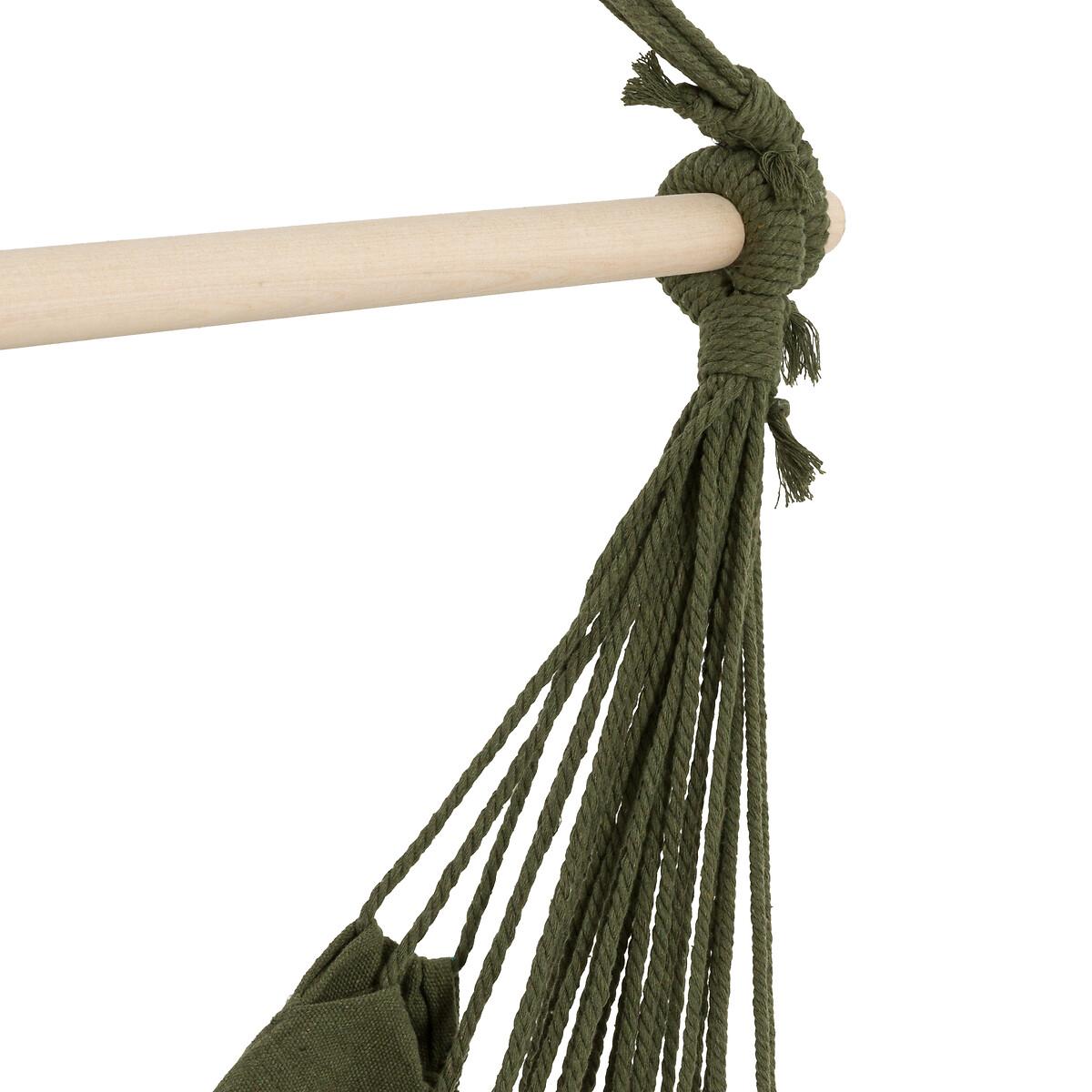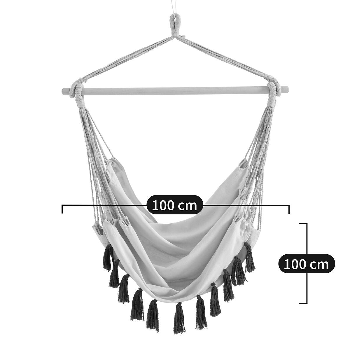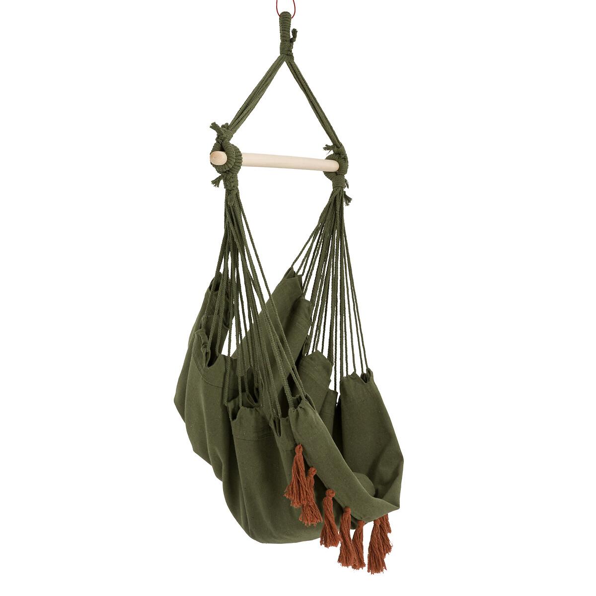 For reading, improving your tan or simply relaxing... Opt for the Sista hammock chair!Product Details • Single-seater hammock chair • Canvas 55% cotton, 45% polyester 300gr, finished with a pom-pom trim • 100% polyester coloured fringes • Solid FSC® birch bar, natural colour finish • Max weight 110kg • Fixing system and screws not included • Comes with a cover. Dimensions • Length: 100cm • Width: 100cmDelivery:. Sold pre-assembled. Note! Please check that all access points are large enough to accommodate your delivery (doors, stairs, lifts). • WOOD FROM SUSTAINABLY MANAGED FORESTS. FSC® certified wood comes from forests that are environmentally, socially and economically well managed. Parcel dimensions and weight • 1 parcel • L157 x H18 x D157cm, 82.5kg