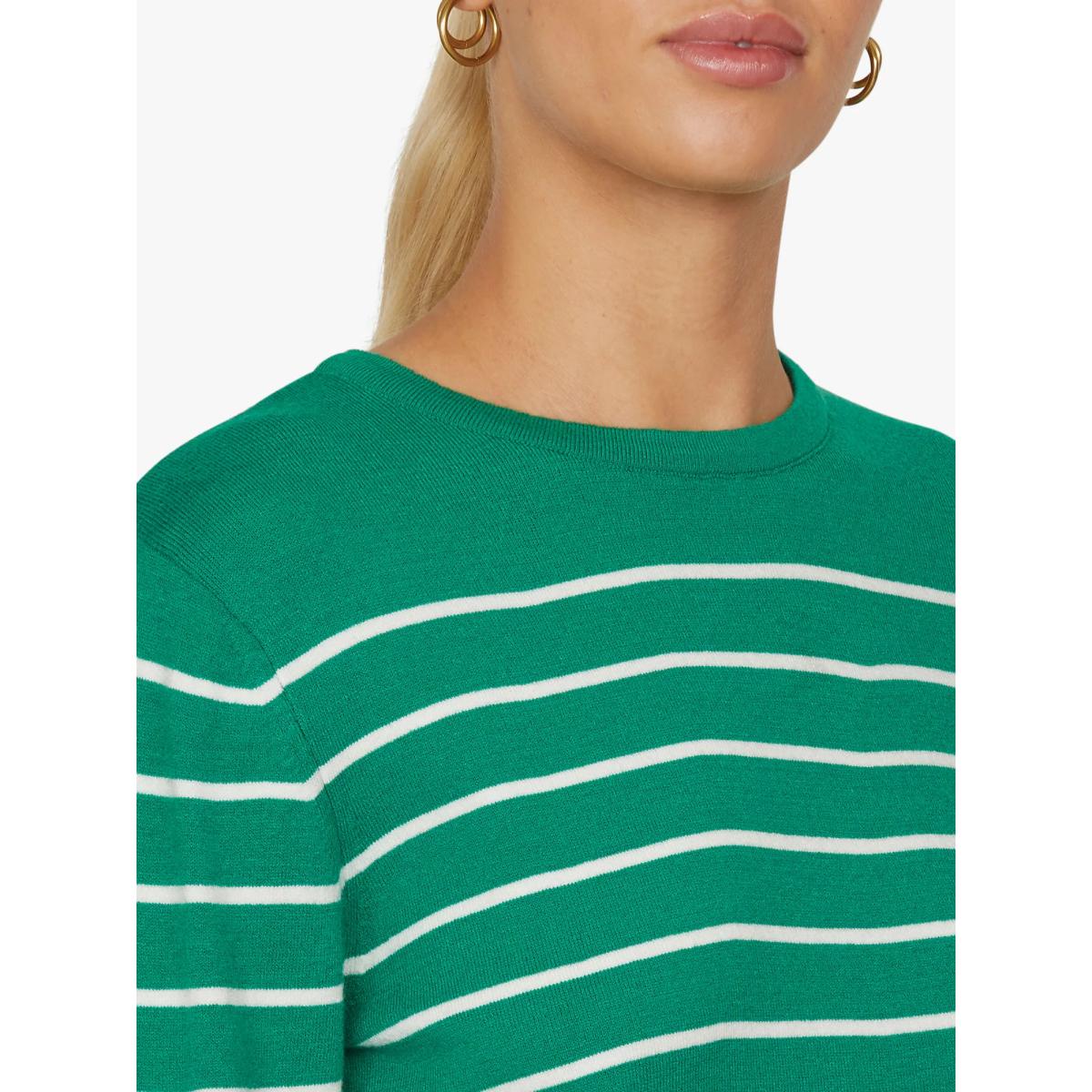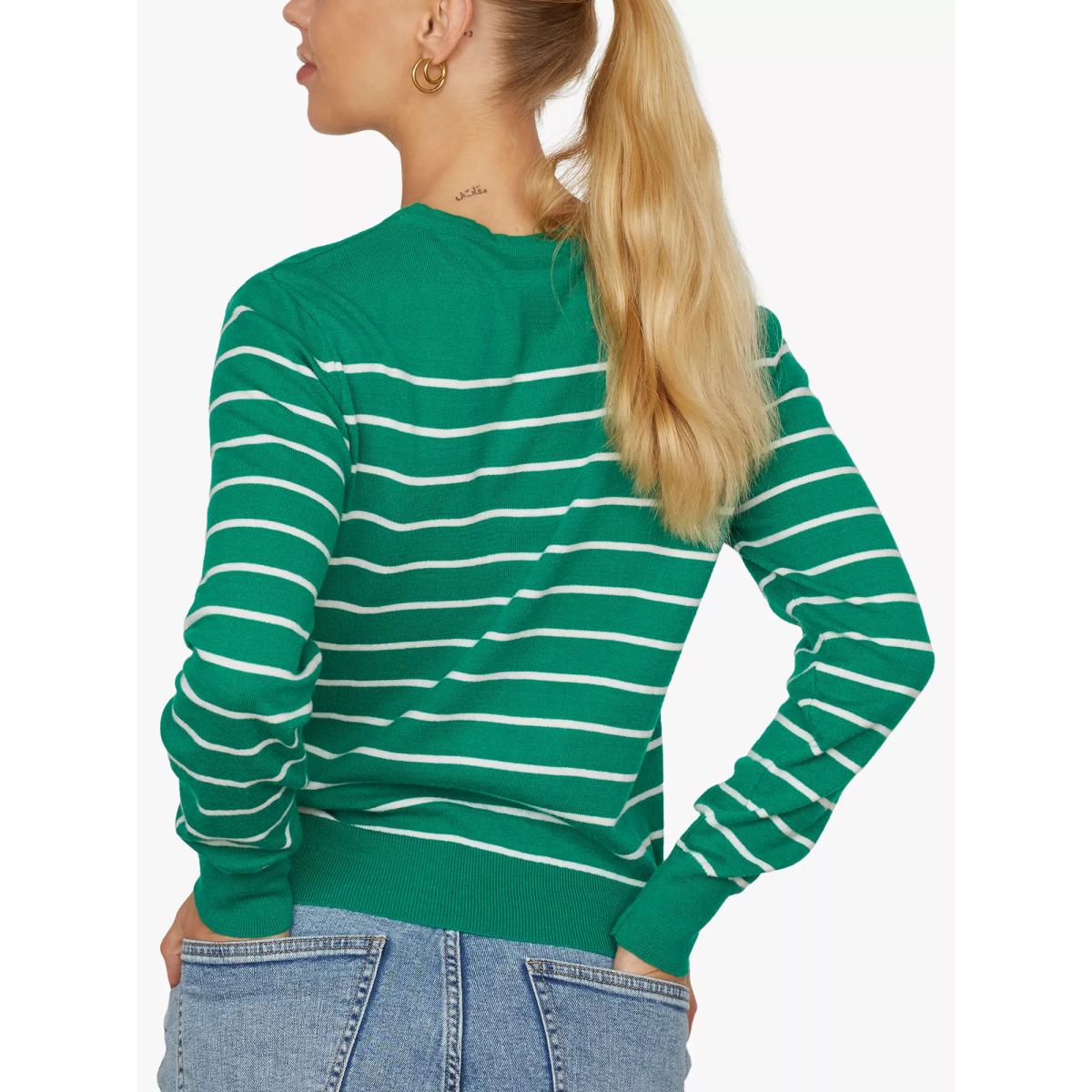 I love this knit top for its relaxed, approachable look that pairs perfectly with a range of interiors, especially those leaning towards a cosy, casual vibe. It works well in rooms with green and neutral accents, adding a touch of natural calm. When styling, consider layering it over light blouses or tucking it into high-waisted trousers for a smart-casual feel. In terms of interiors, it complements spaces decorated with natural fibres, wooden furniture, and plants - perfect for creating an inviting and laid-back atmosphere. Keep accessories simple to let the stripe pattern stand out, and it’s ideal for bringing a bit of personality into minimalist or contemporary settings.