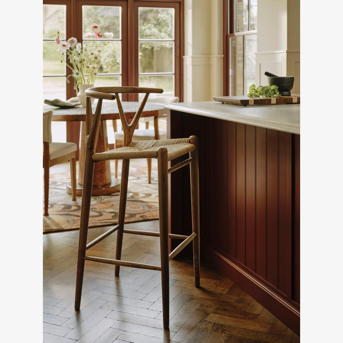 Crafted in Italy, this chair has a solid ash frame fitted with a rope cord seat. Mirroring the natural materials seen throughout Little Beach House Barcelona, the Sitwell stool is made from solid ash wood with a neutral rope cord seat. Made in Italy, it's finished with wishbone detailing at the top of the legs.