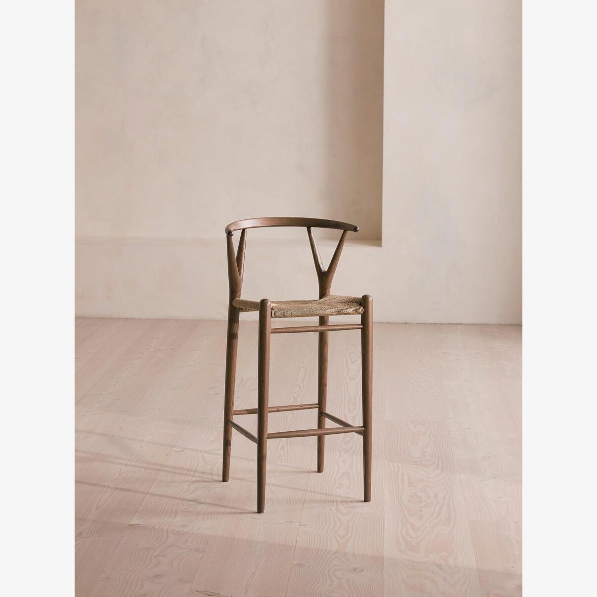 Crafted in Italy, this chair is built with a solid ash frame fitted with a rope cord seat. Mirroring the natural materials seen throughout Little Beach House Barcelona, the Sitwell stool is made from solid ash wood with a neutral rope cord seat. Made in Italy, it's finished with wishbone detailing at the top of the legs.