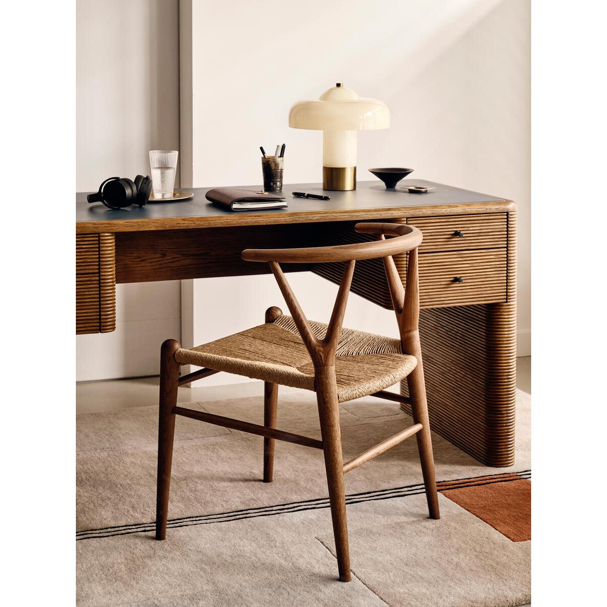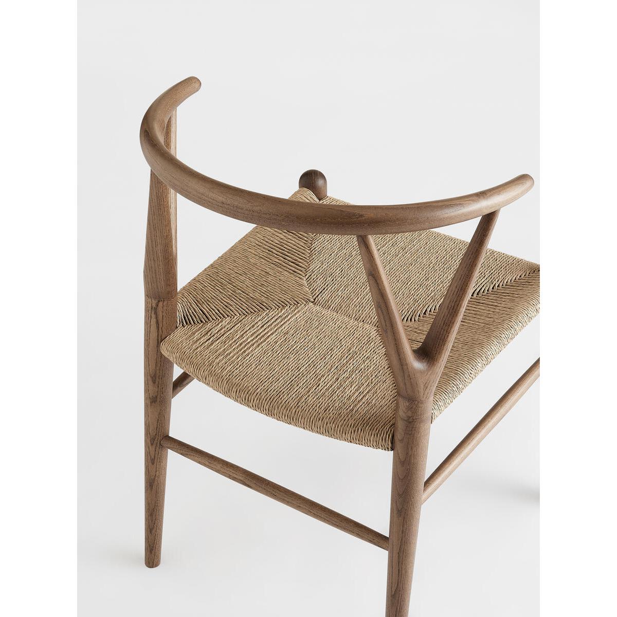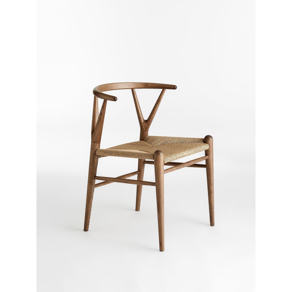 Referencing the seating styles at Little Beach House Barcelona,Sitwell is our modern take on mid-century dining chairs. Handmadein Italy, the chair has a curved back with a rope cord seat - aunique seating option for design-led homes. Solid ash dining chair. Walnut stain. Handmade in Italy. Rope cord seat. Wishbone leg detail. Inspired by Little Beach House Barcelona.