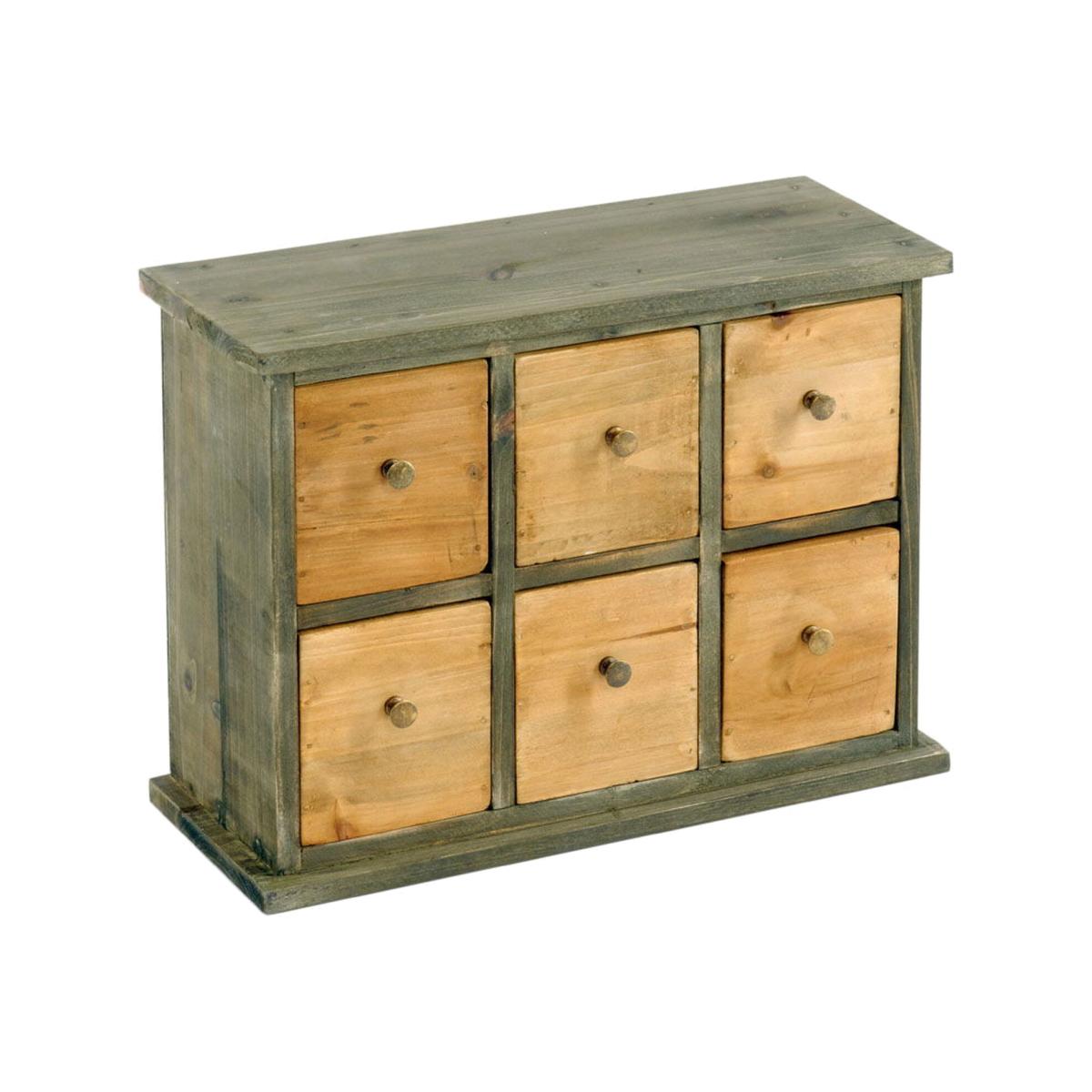 Six Drawer Storage Cabinet - Green/Brown