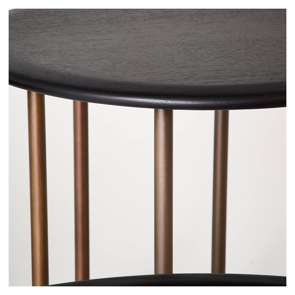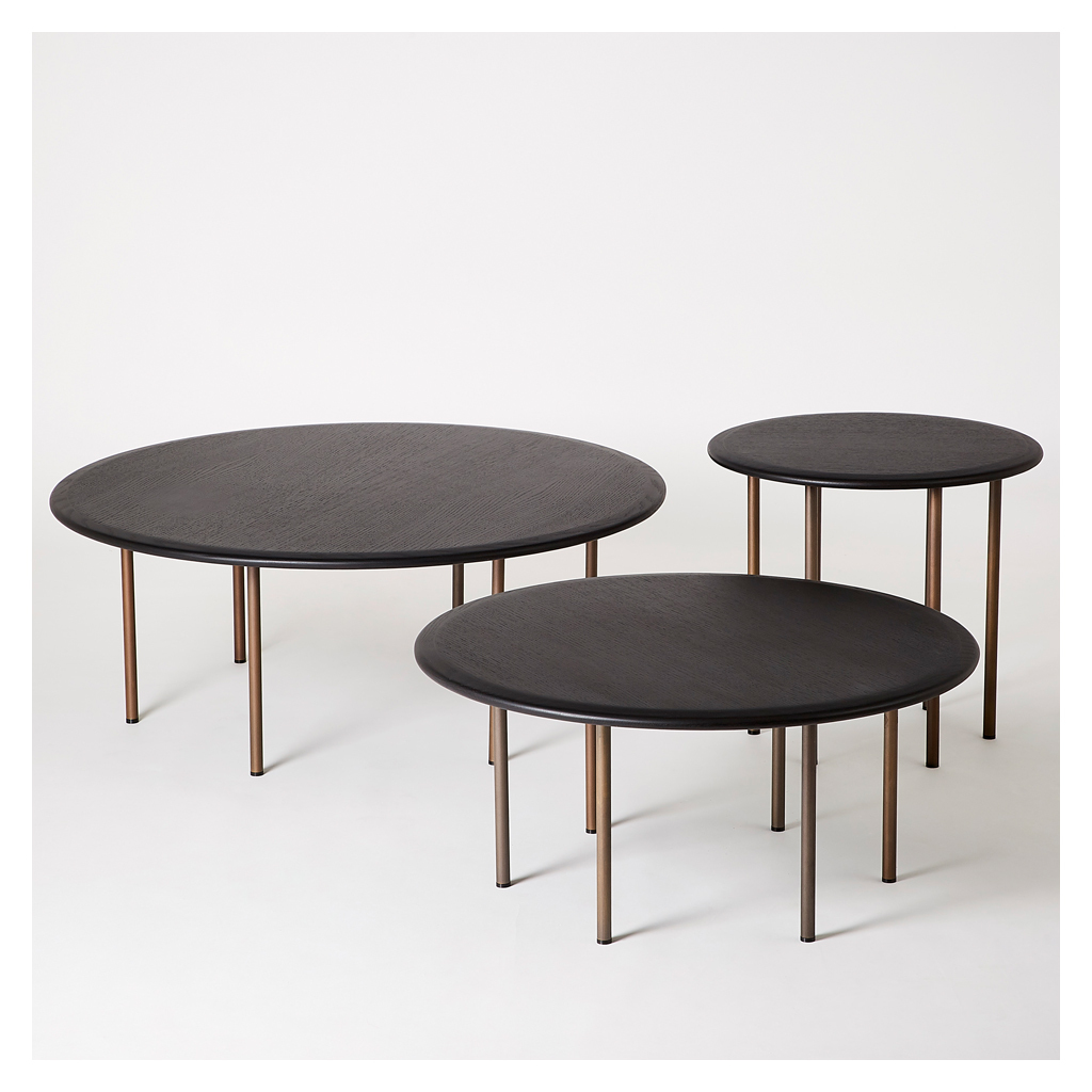 Exclusively designed by Magnus Long for The Conran Shop, the Six Leg Coffee table is a distinctive set of three pieces that combine the beauty of brass and wood. Crafted from oak and finished with black paint to enrich and showcase the natural grain of the wood, each of the three Six Leg Coffee Tables is characterised by its so-named six brushed brass legs that can be positioned to suit your space. Magnus Long is a British industrial designer based in London, working within furniture, product and lighting design. A celebrated name in British design, Long was awarded a Design Guild Mark Awards in 2015 for his Cross Leg Lounge Chair, which he designed exclusively for The Conran Shop.